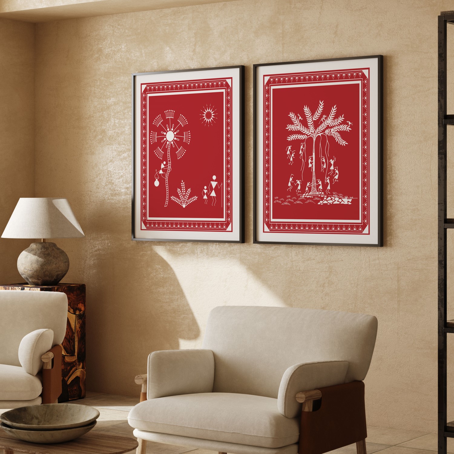 Set of 2 Warli art of tree and dandelion