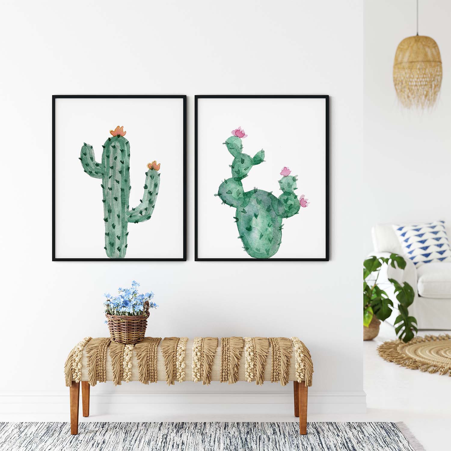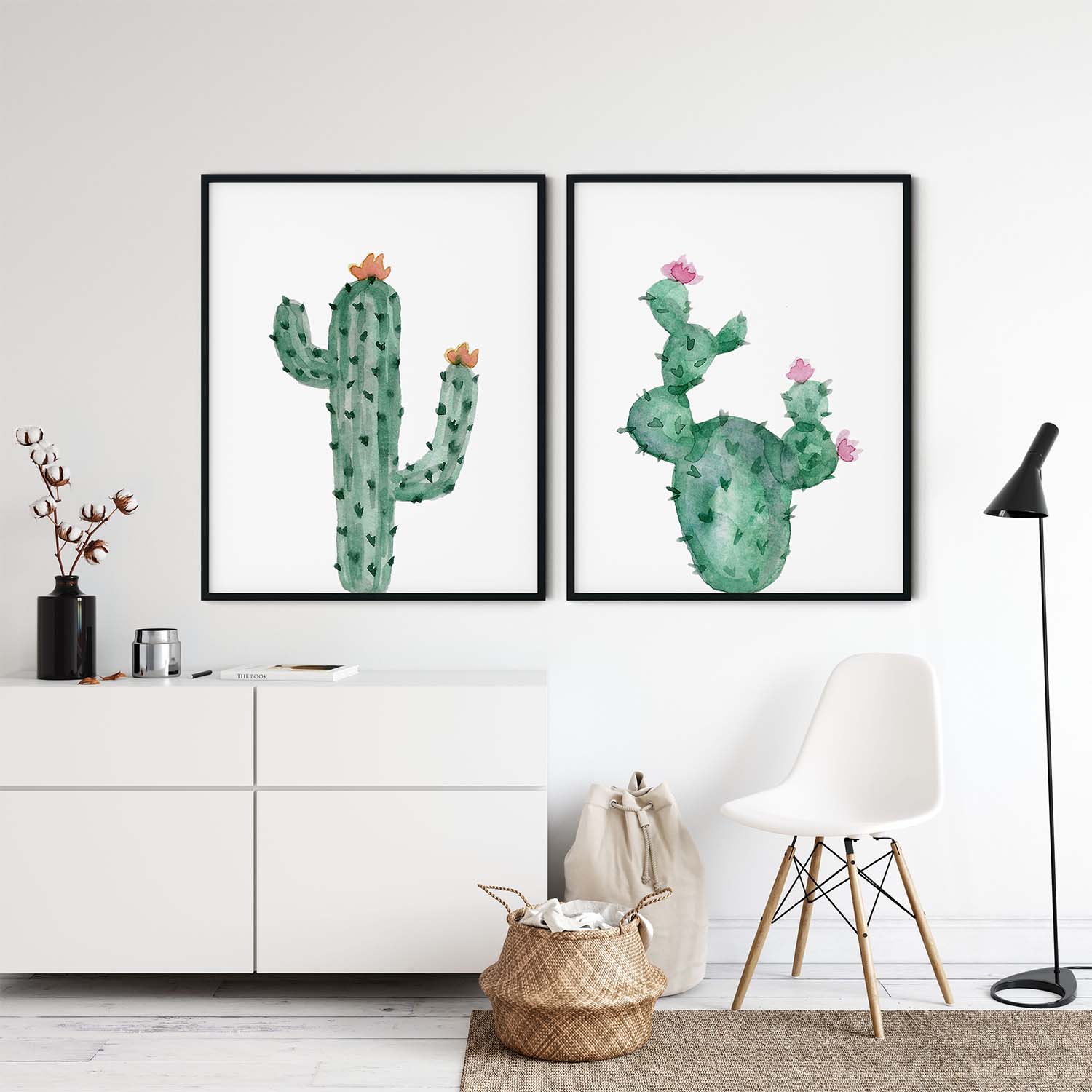 Set of 2 watercolor cactus