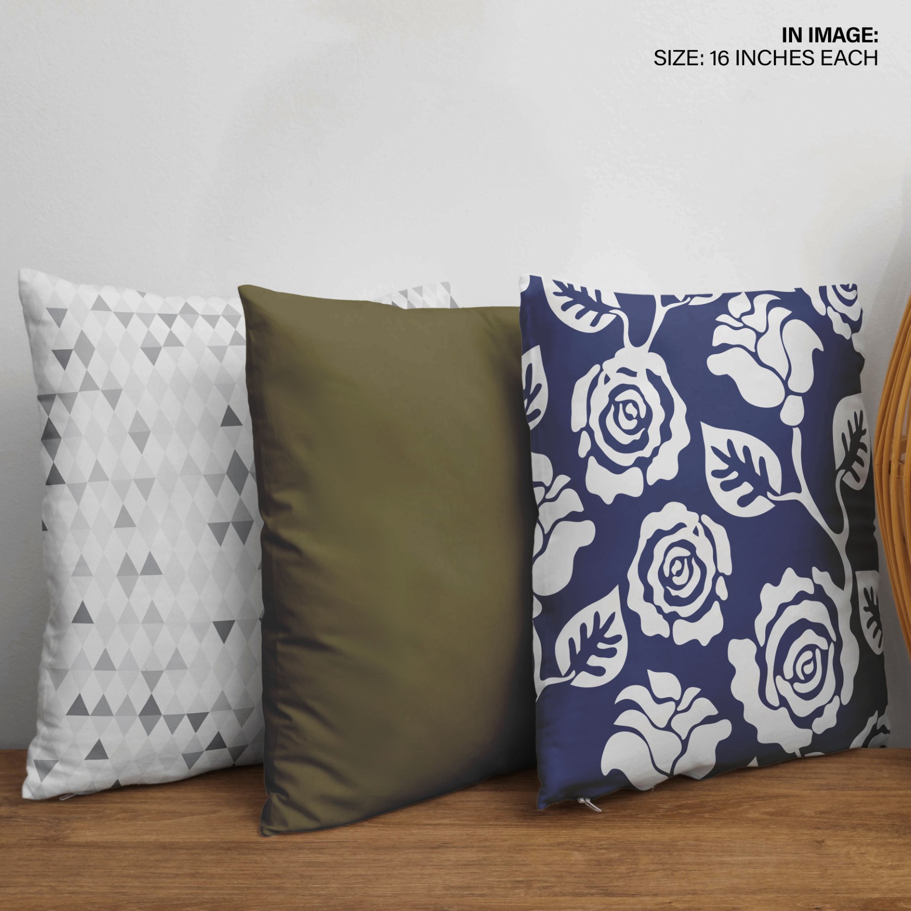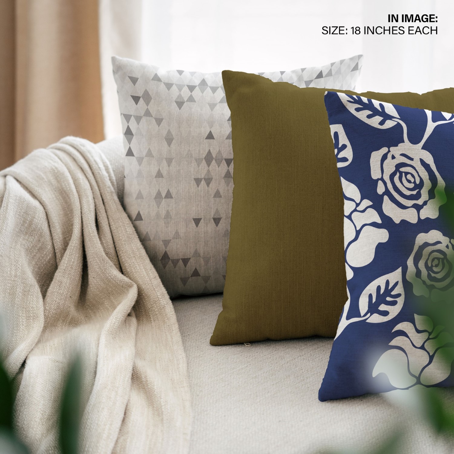 Set of 3 angular indigo flowers cushion covers