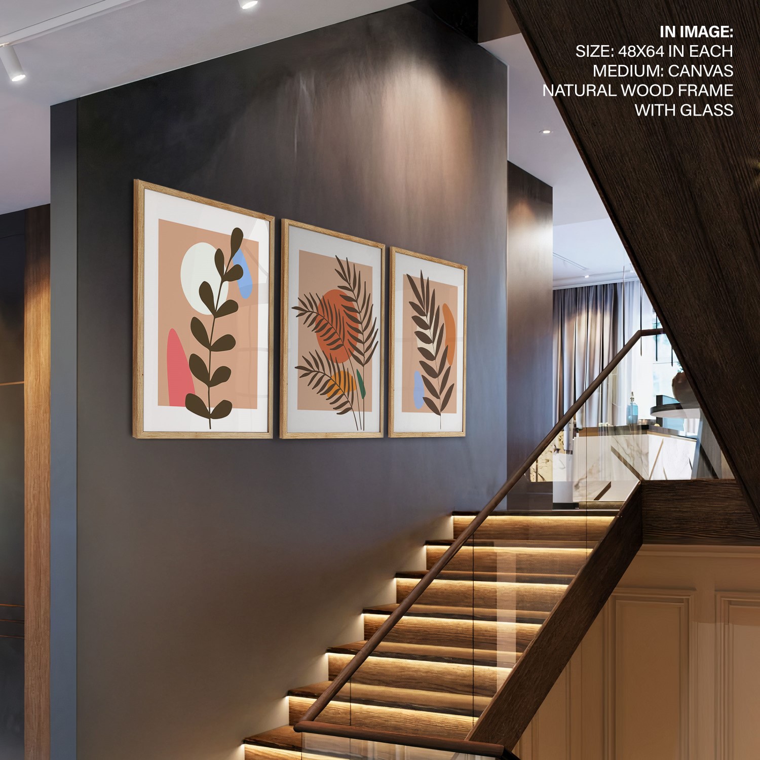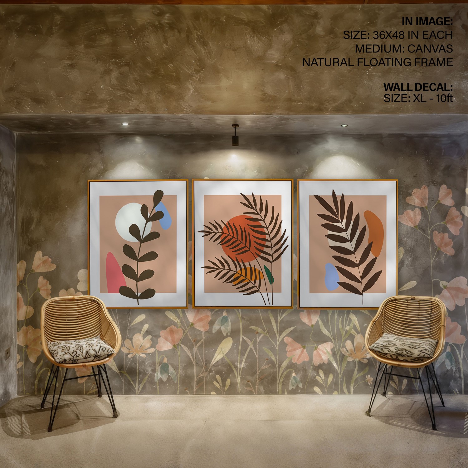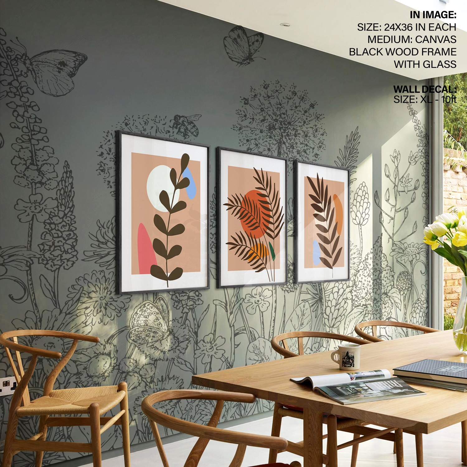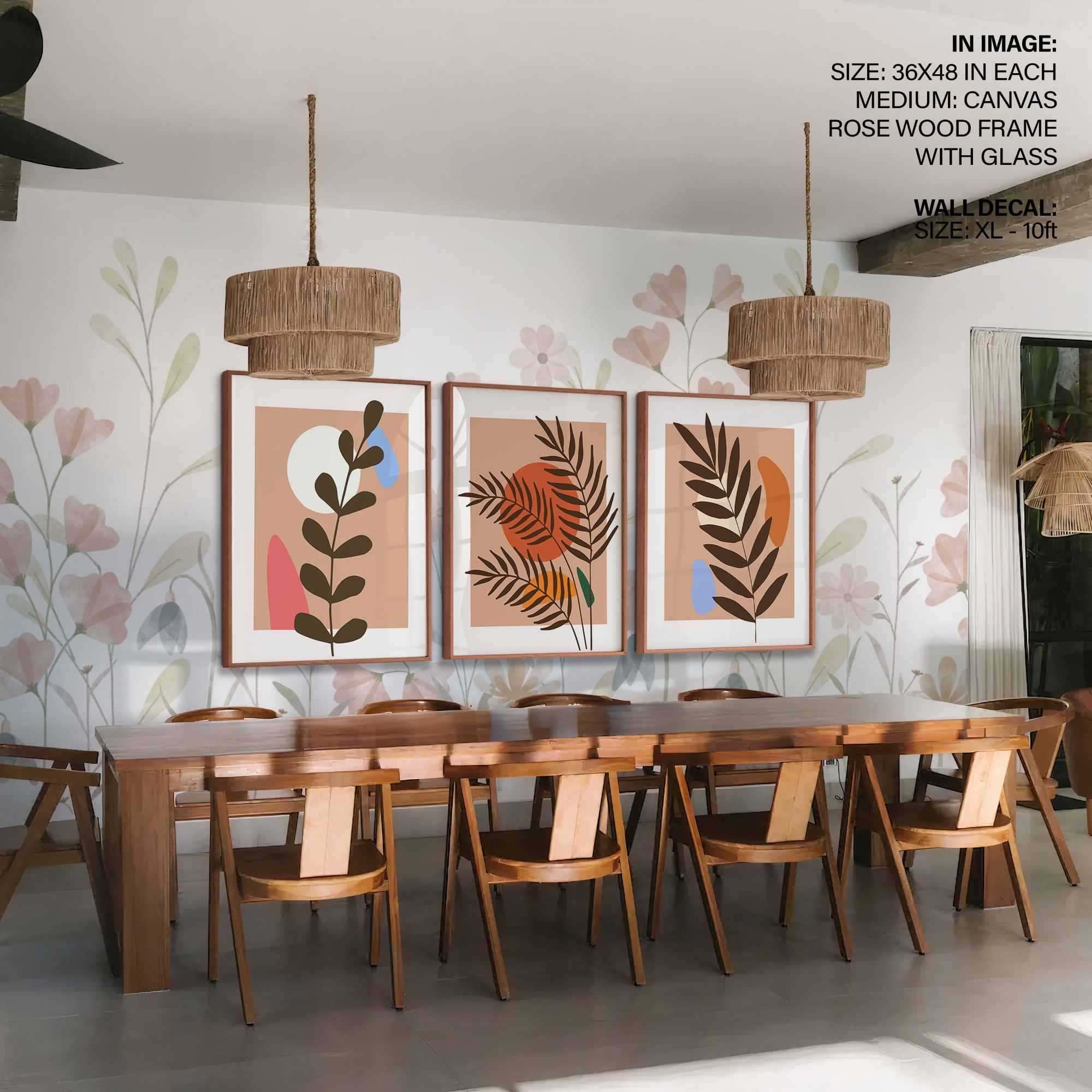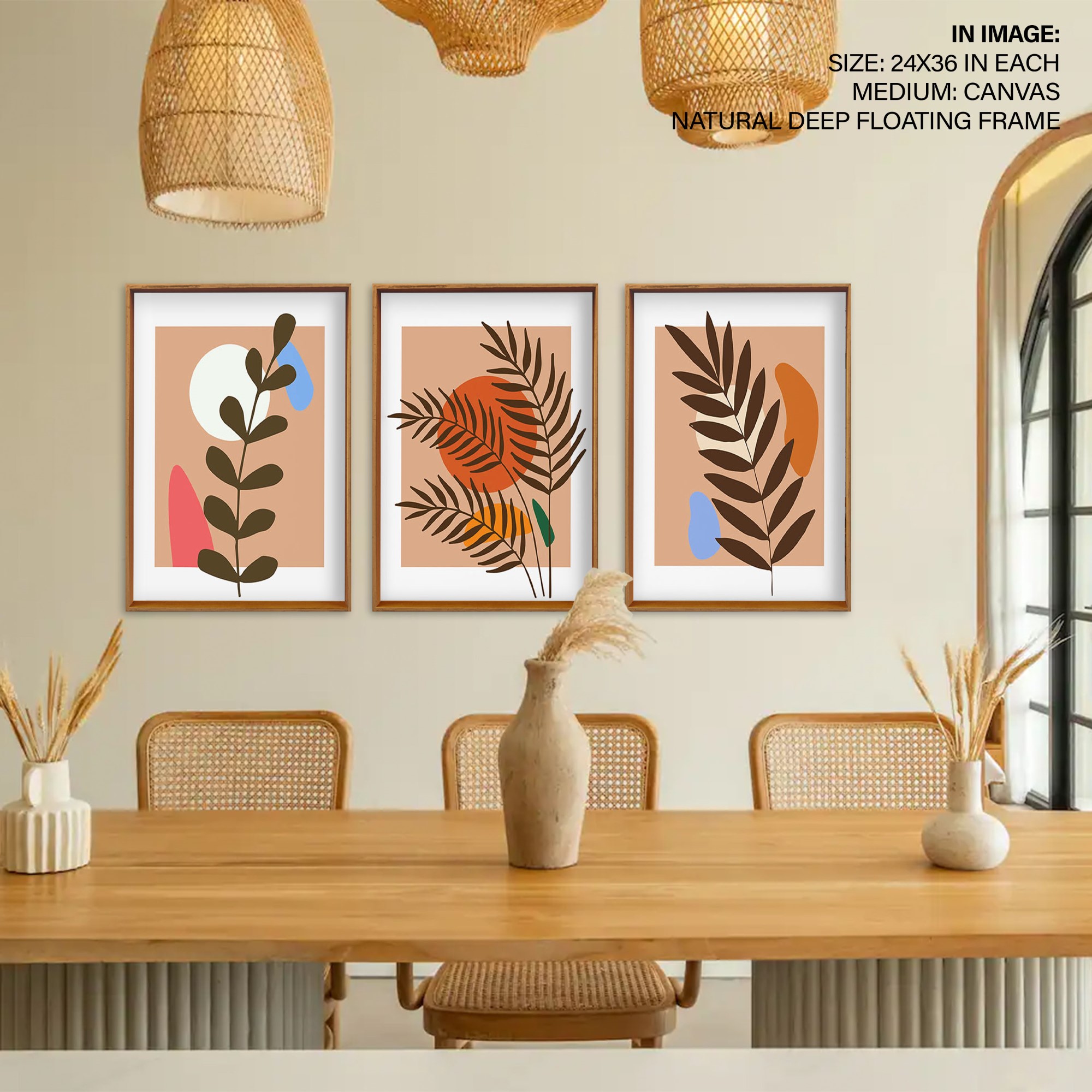 Set of 3 boho leaves botanical abstract