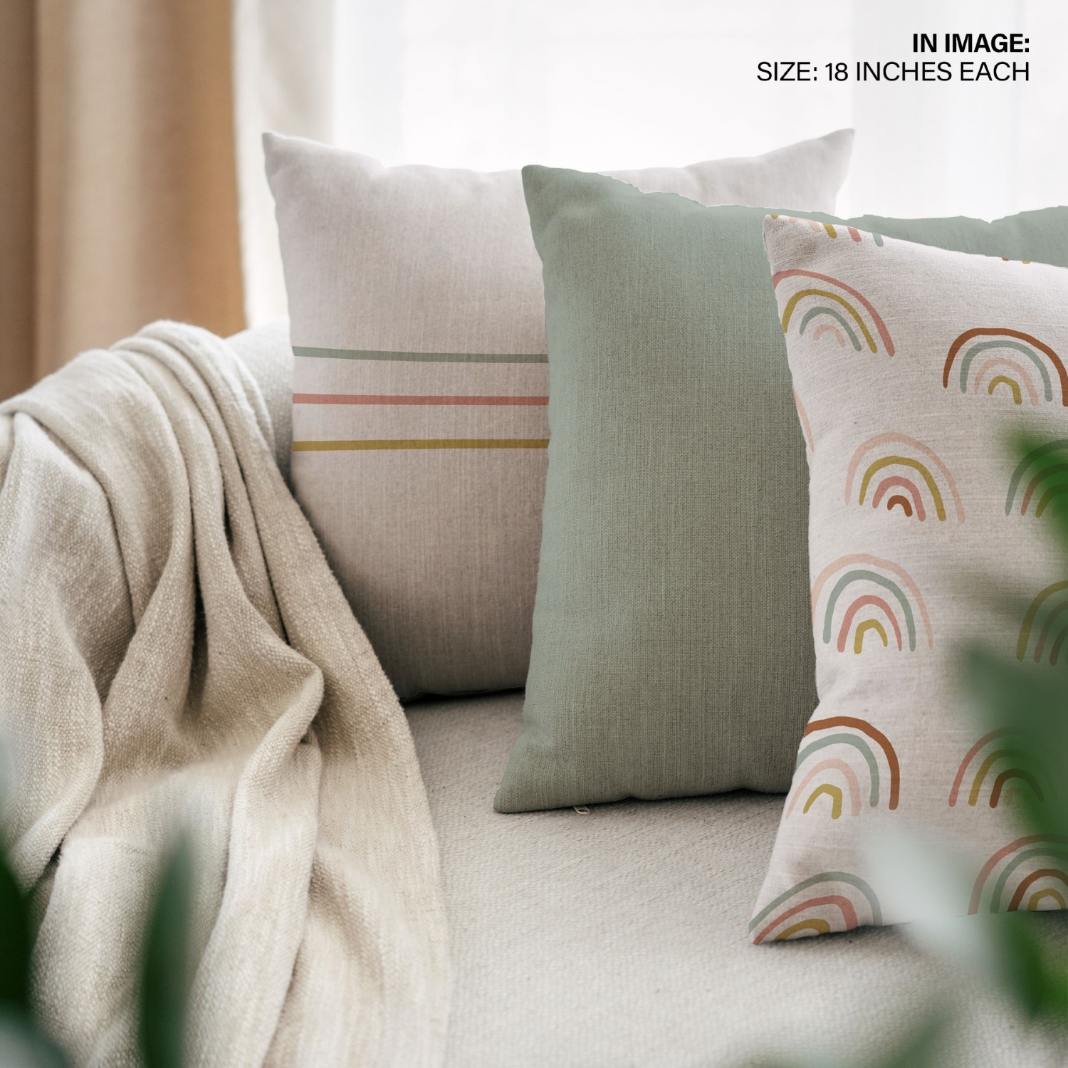 Be the first to review “Set of 3 boho minimal rainbow cushion covers”
