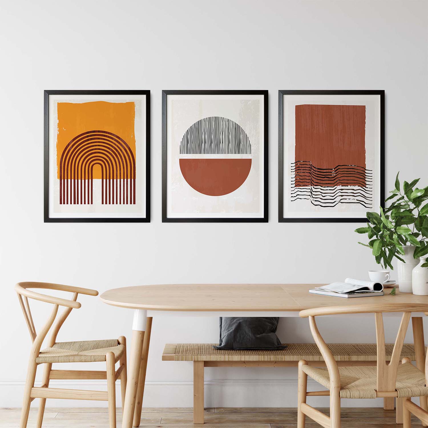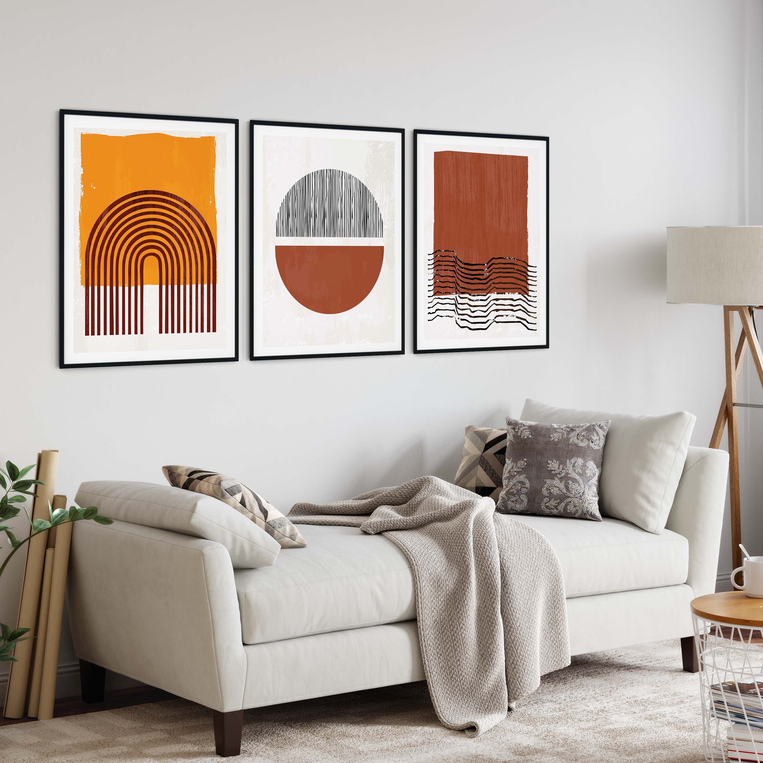 Set of 3 burnt brown yellow abstract