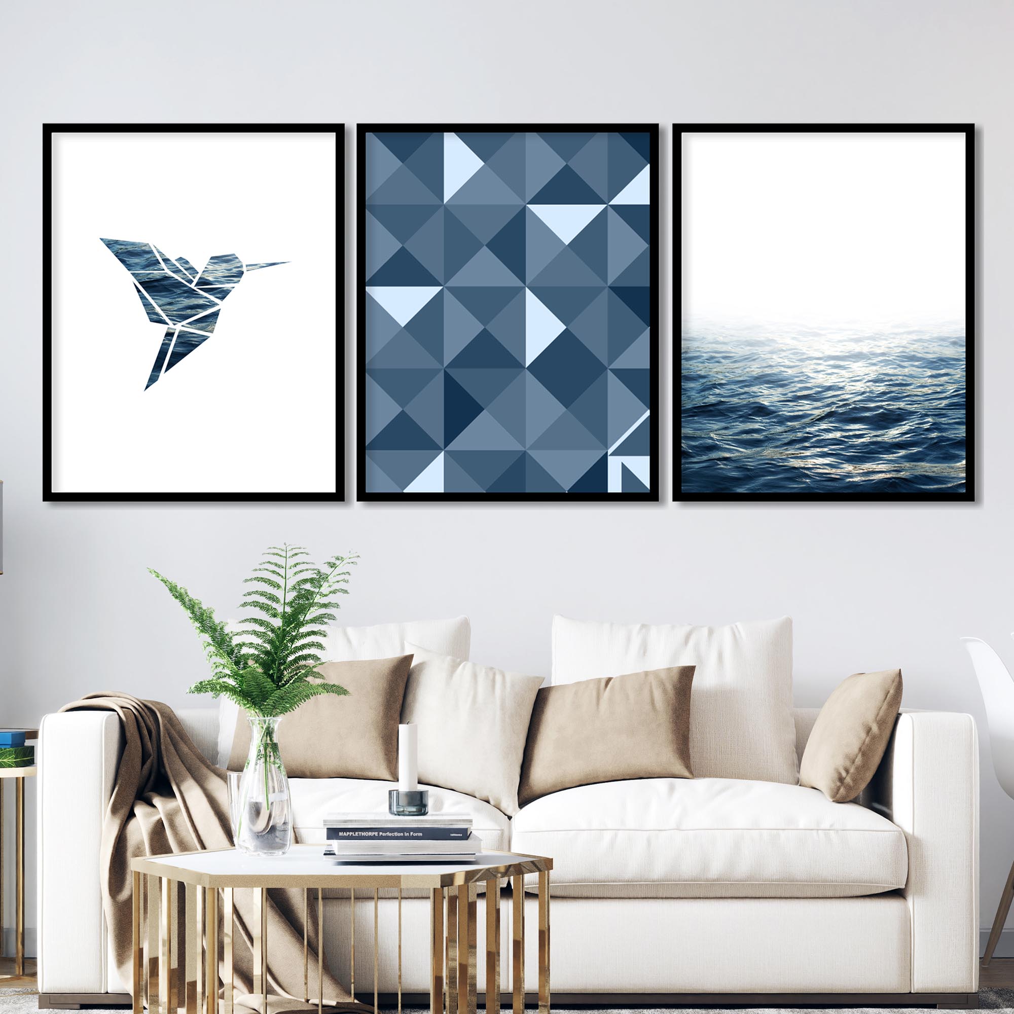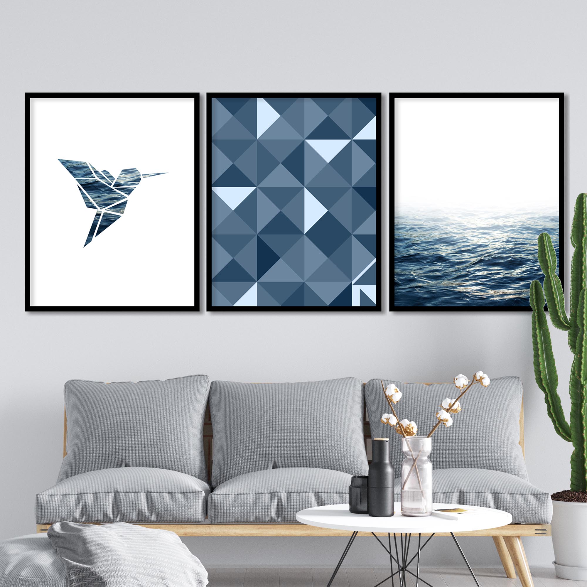 Be the first to review “Set of 3 geometric bird and sea”