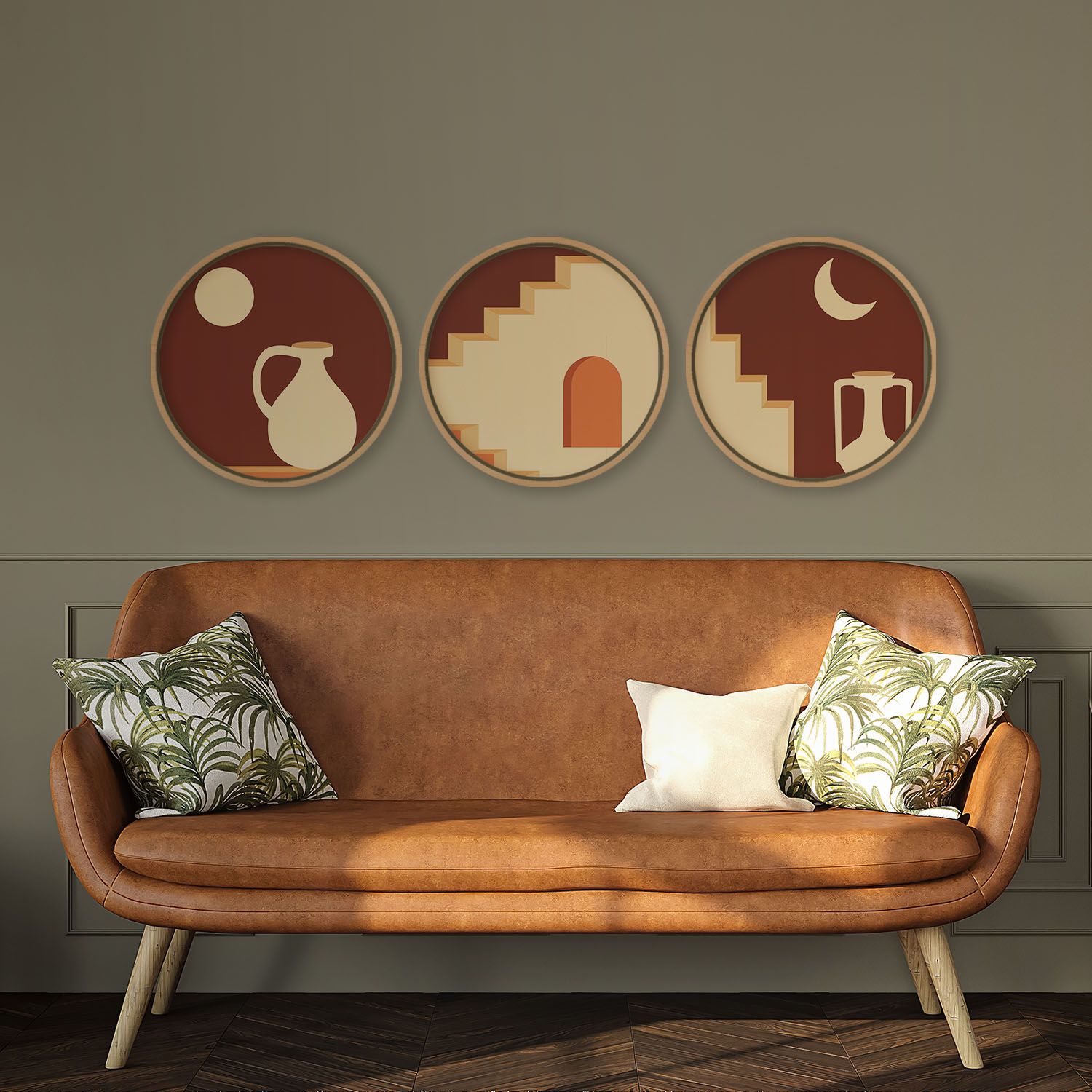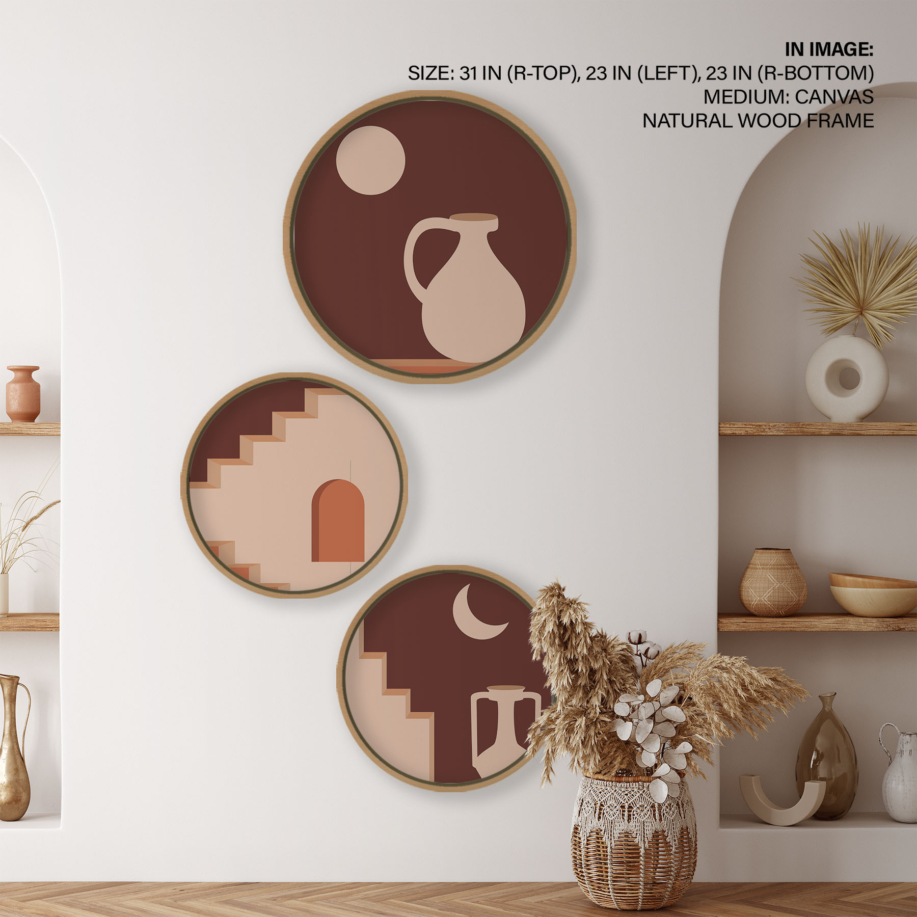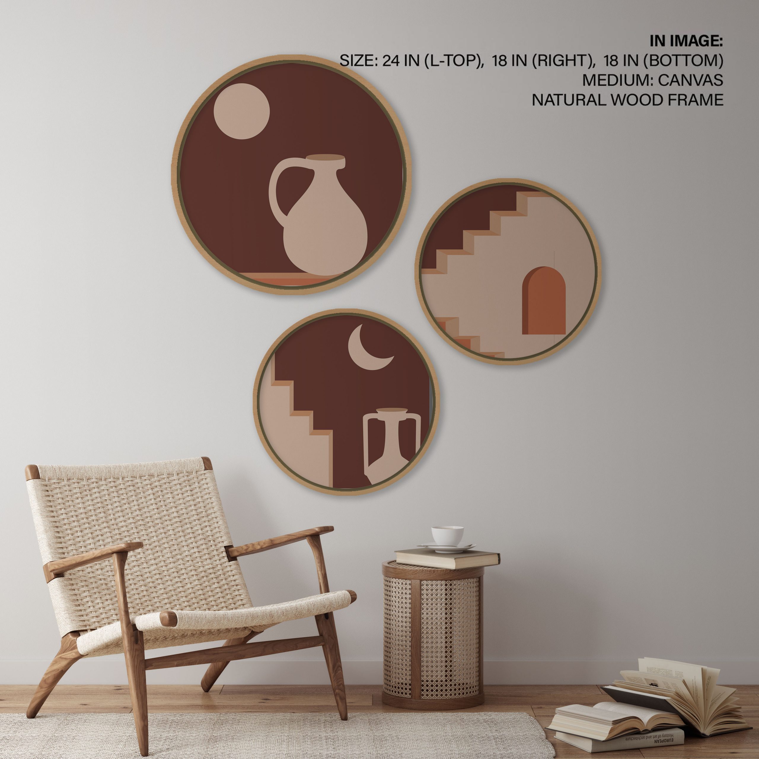 Set of 3 Modern Bohemian – Circular Wooden Frames