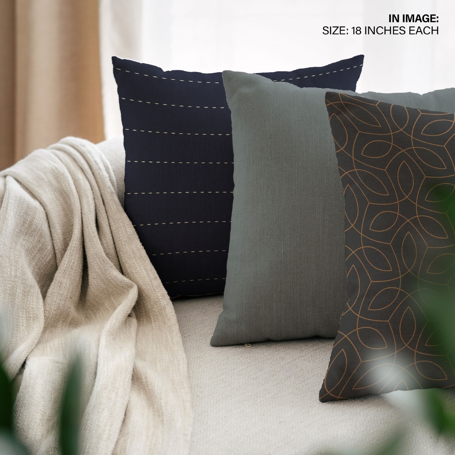 Set of 3 slenderize lines pattern cushion covers