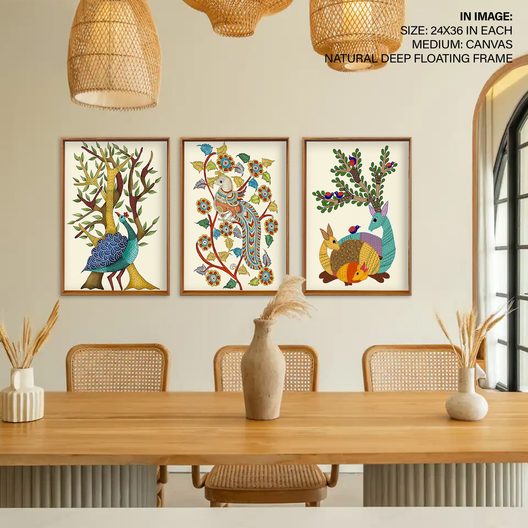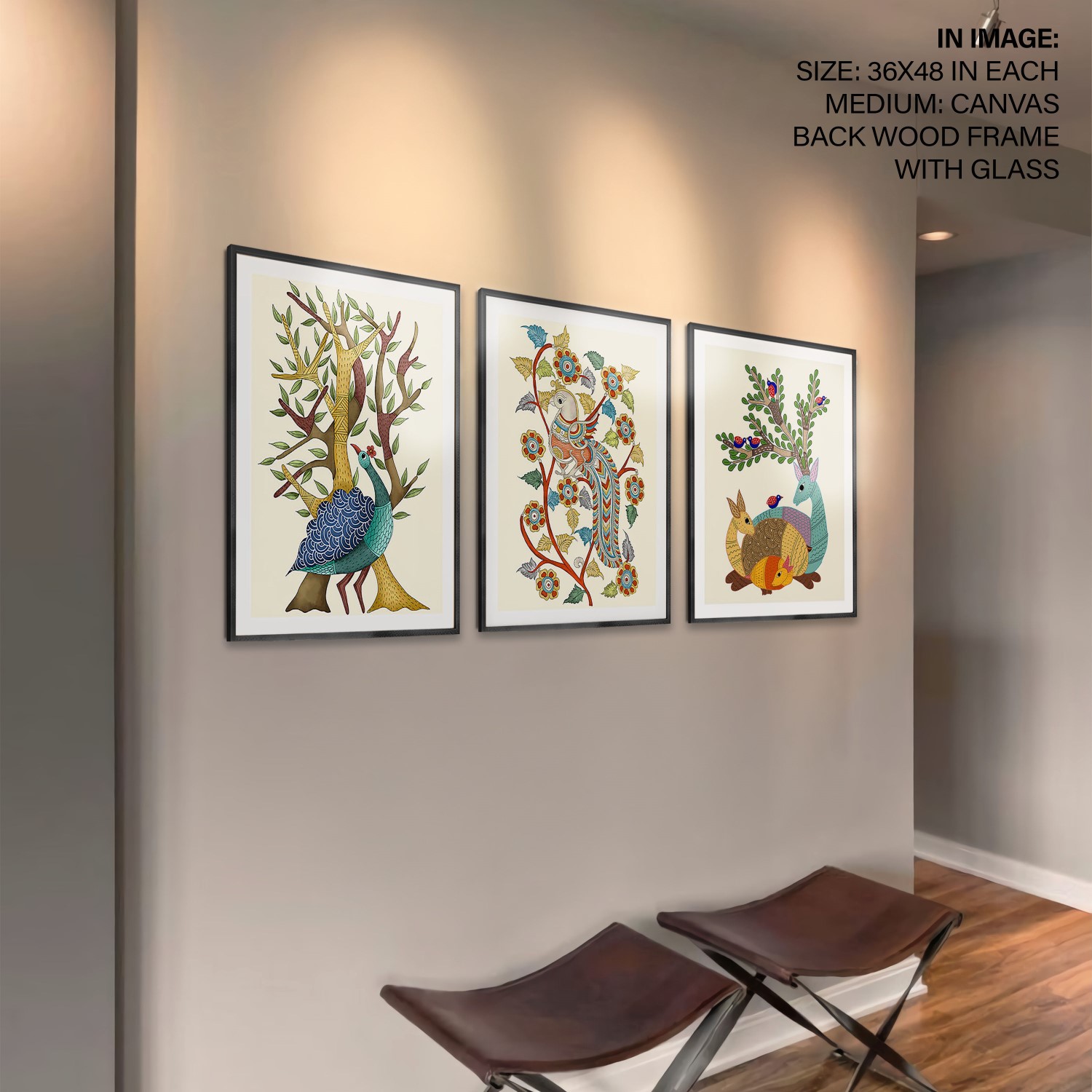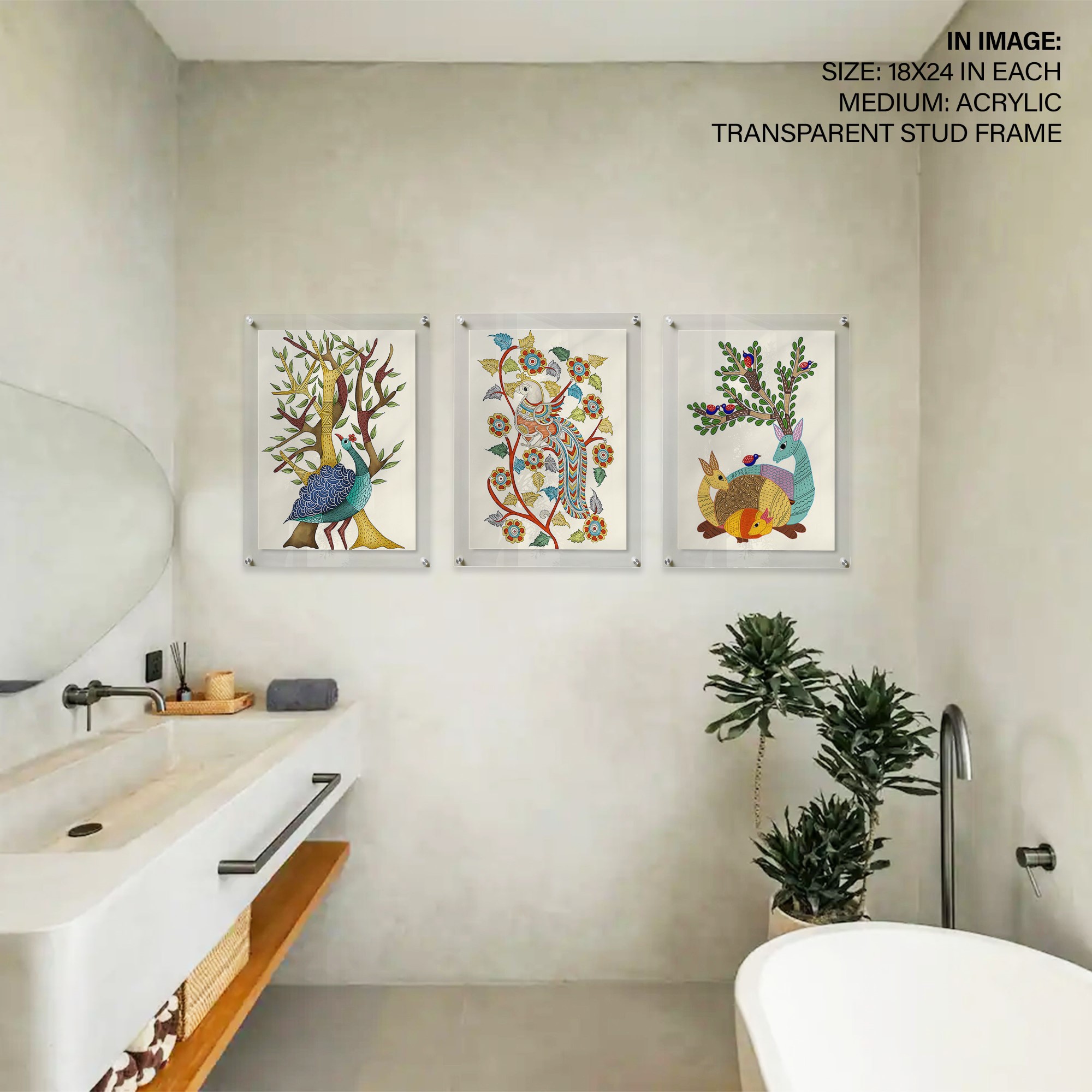 Set of 3 traditional indian gond art