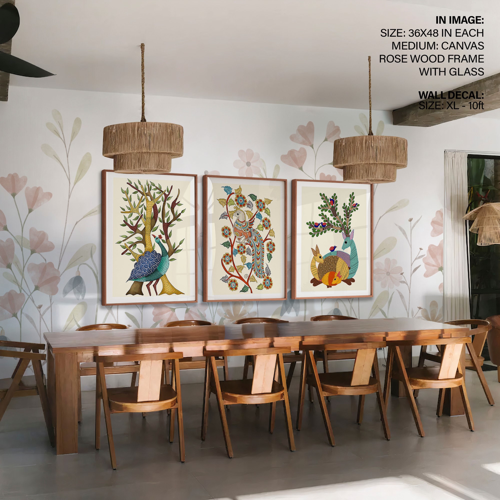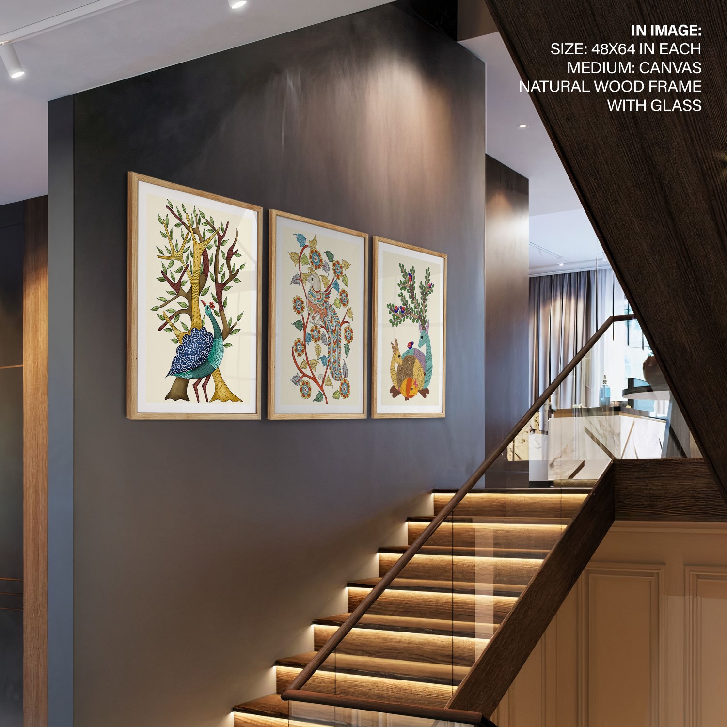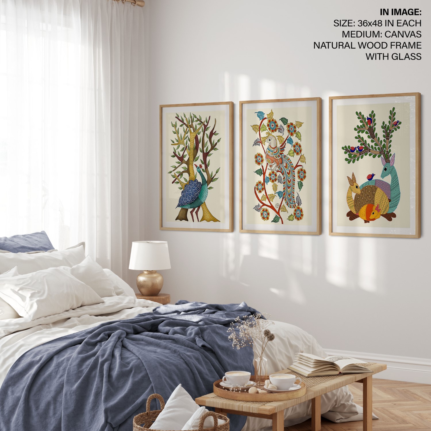 Set of 3 traditional indian gond art