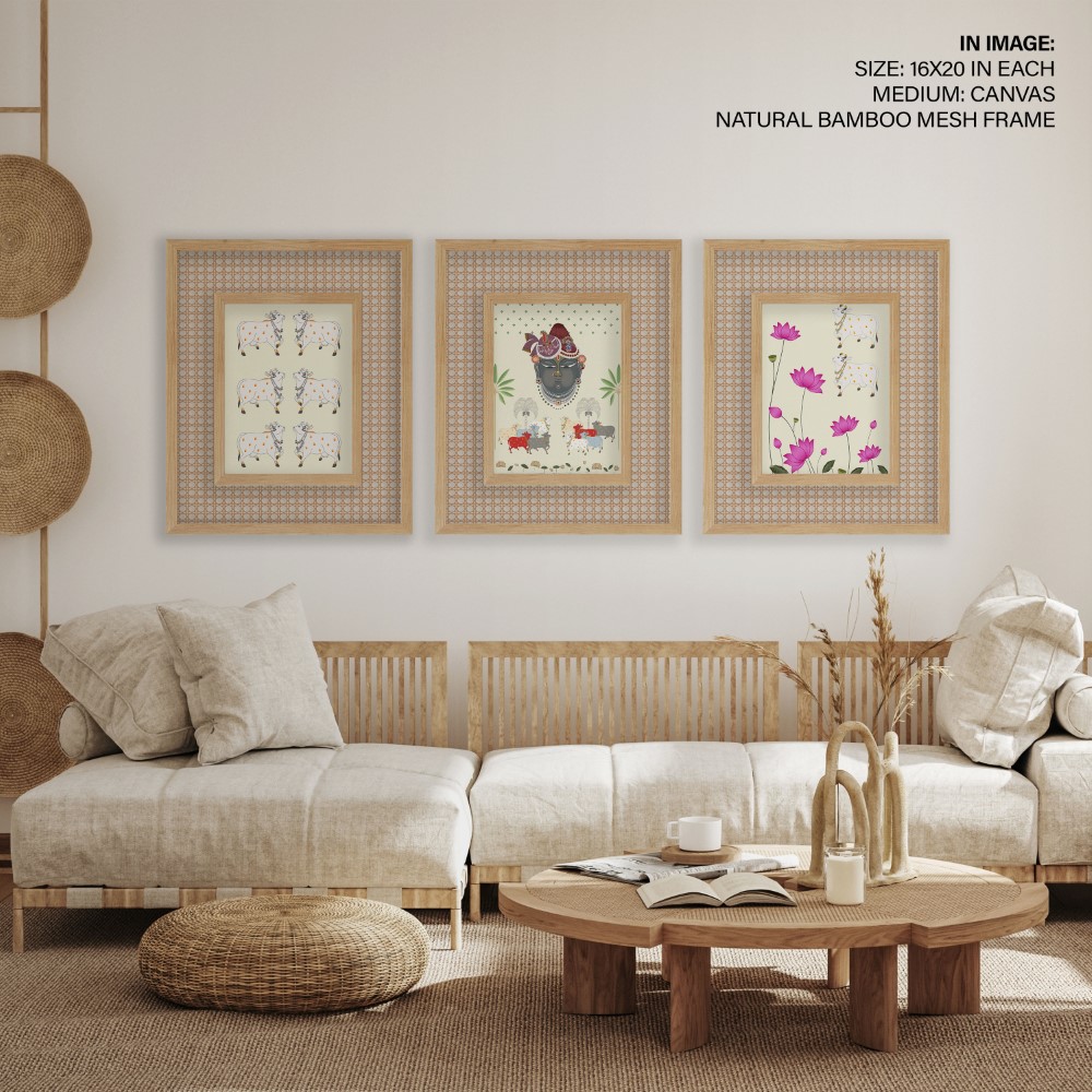 Set of 3 traditional religious pichwai painting shrinathji
