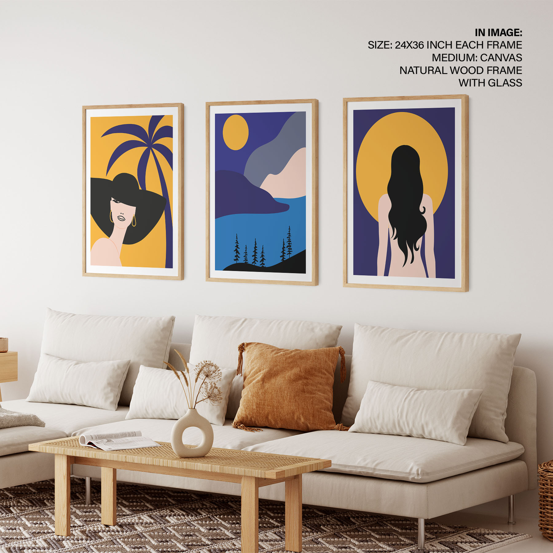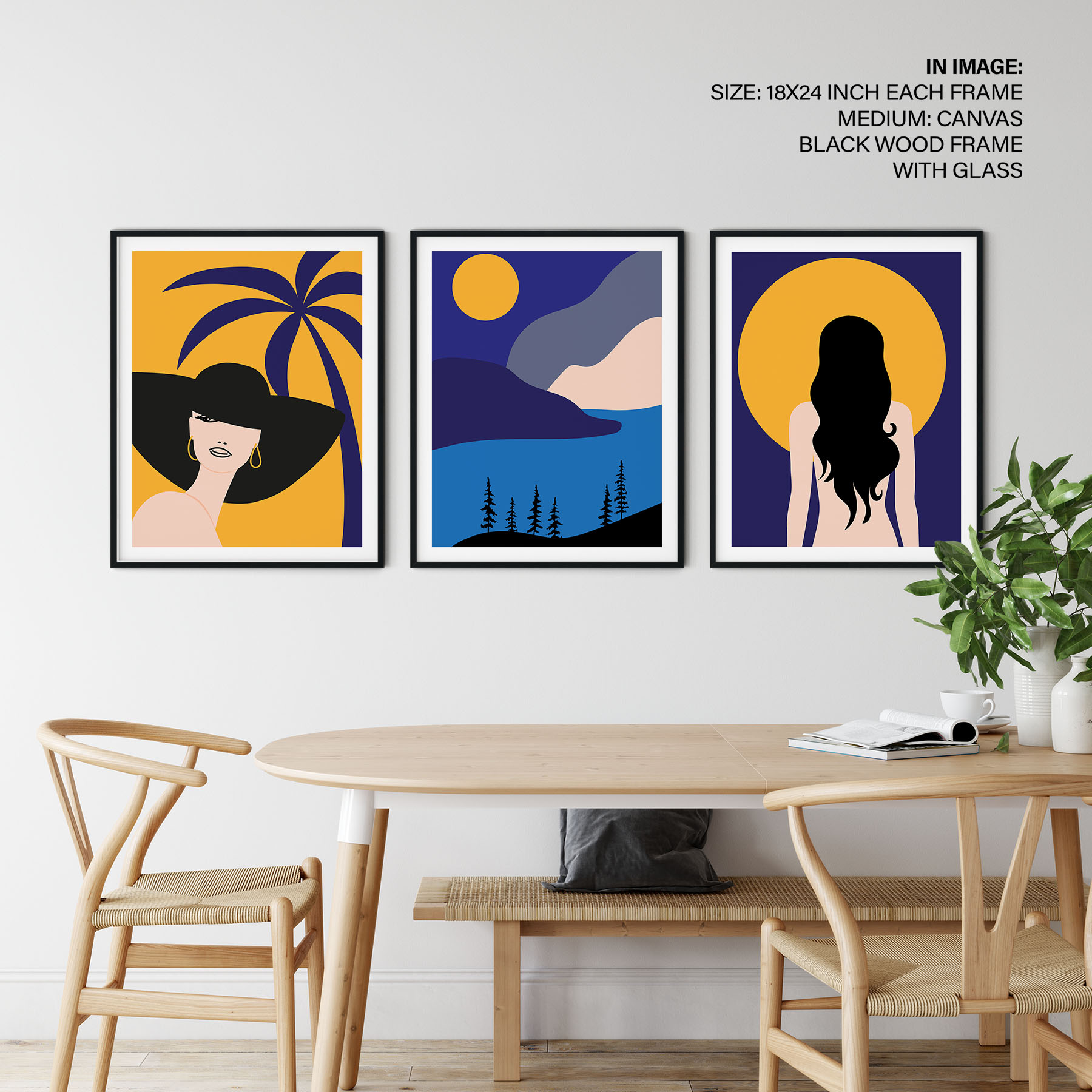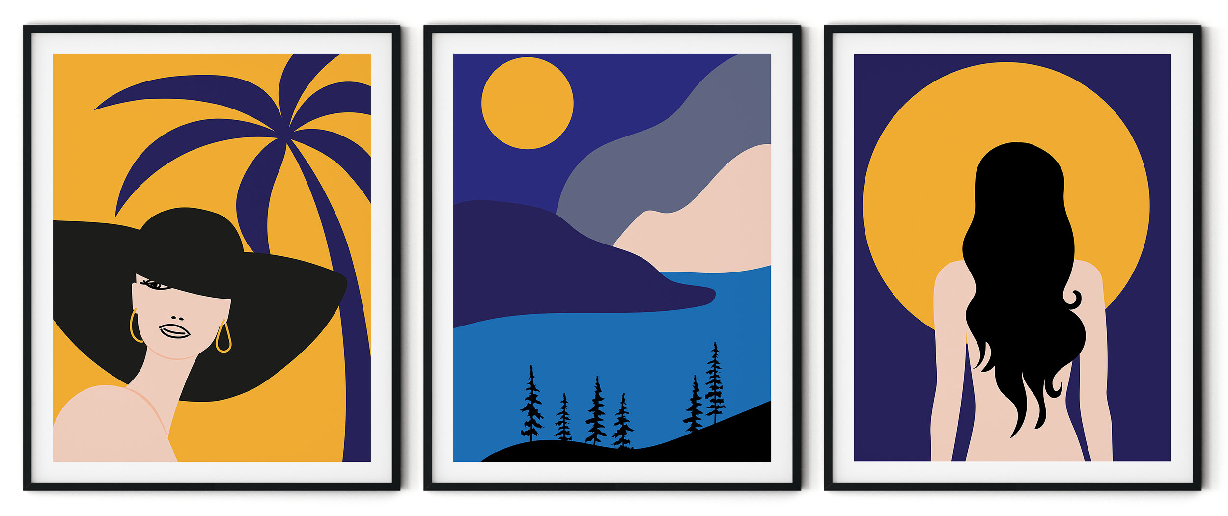 Be the first to review “Set of 3 woman palm sun mountain landscape”