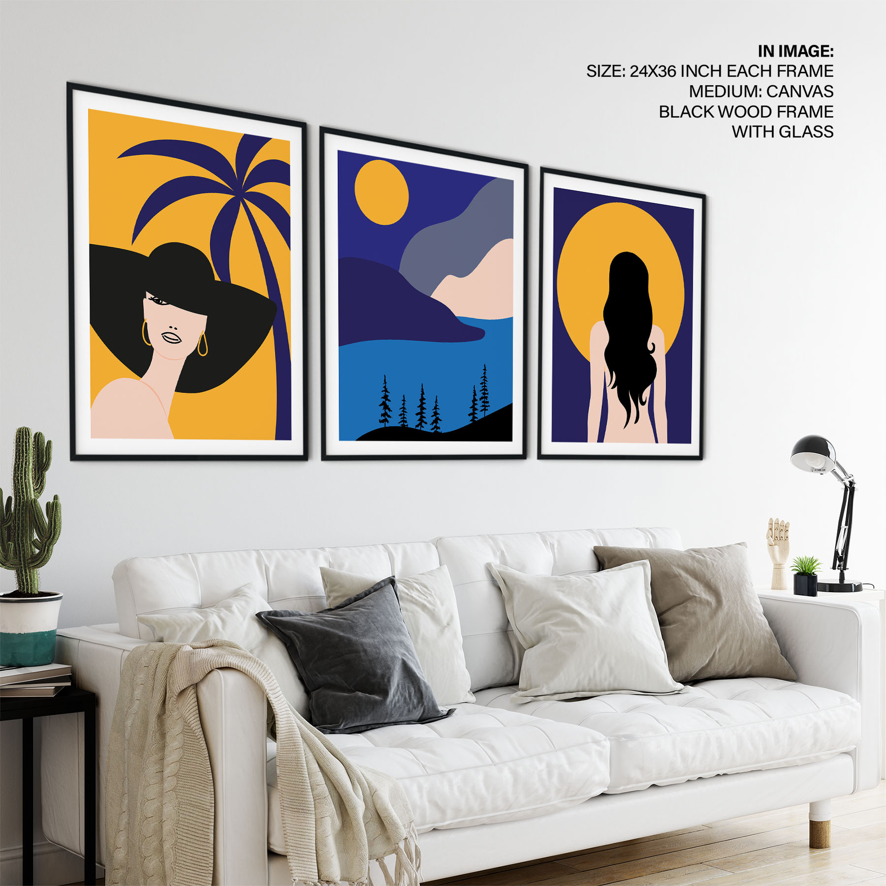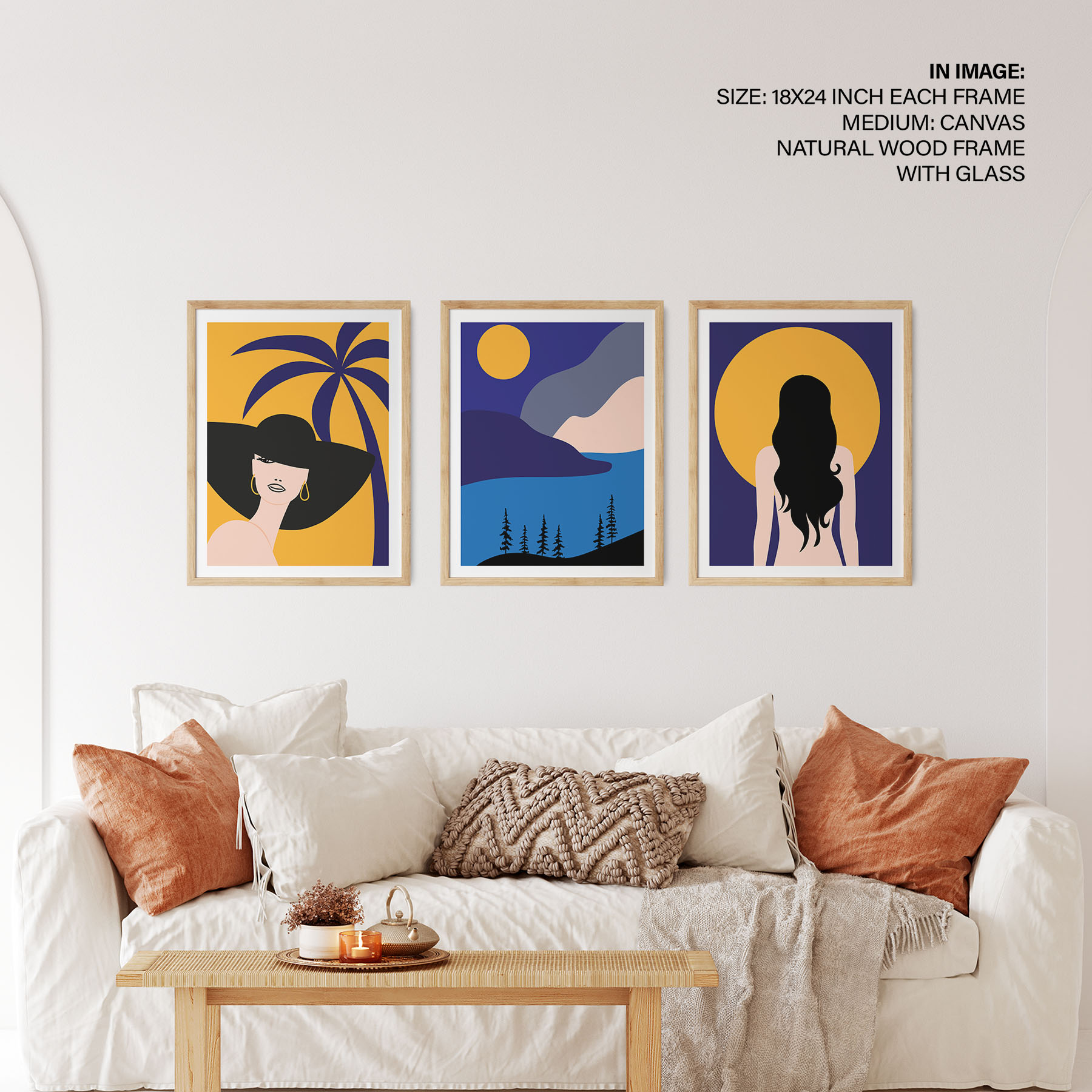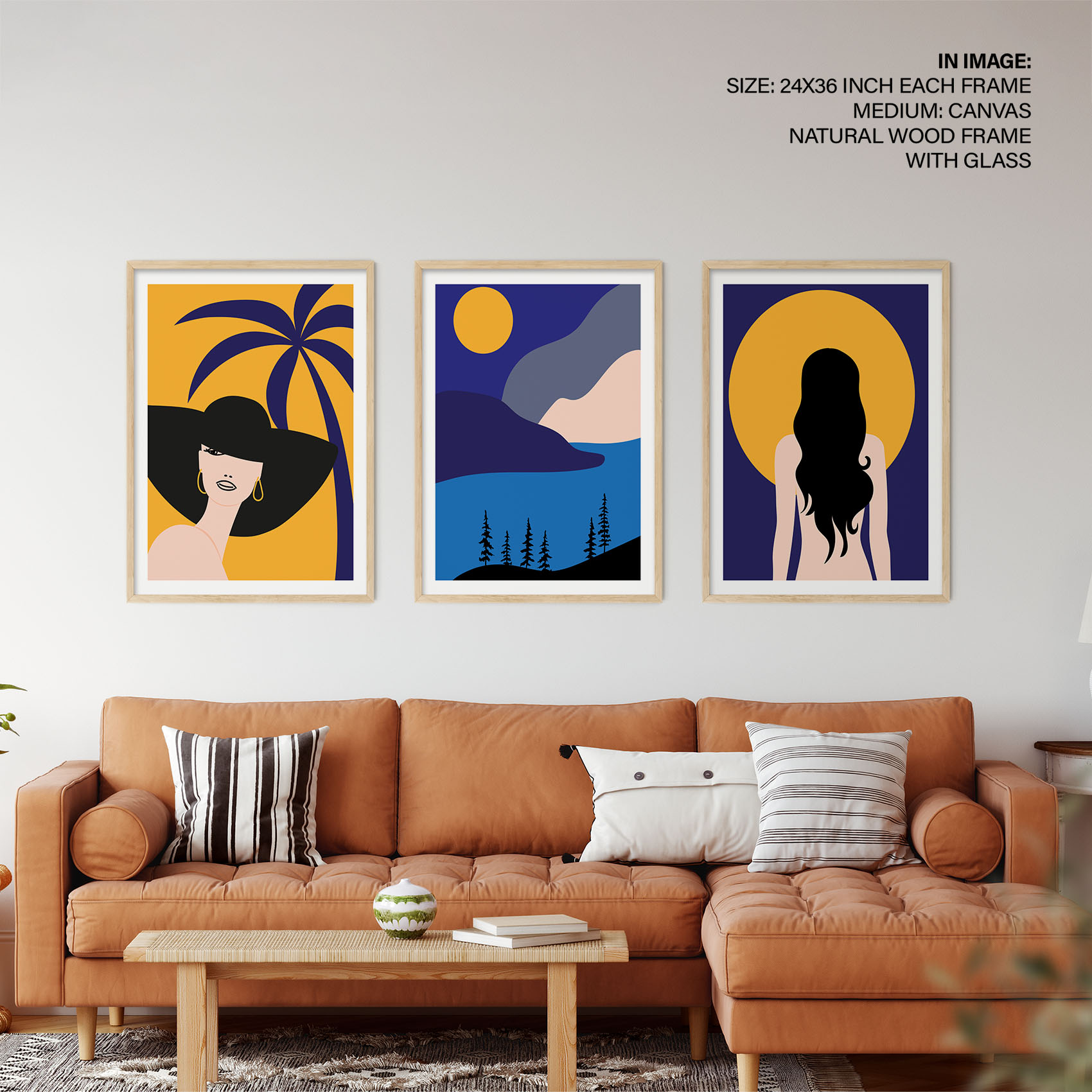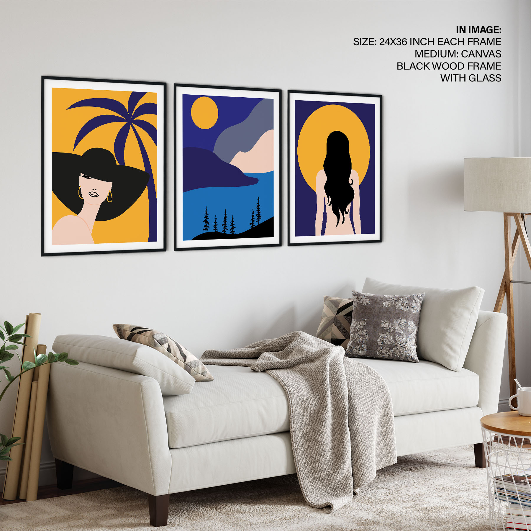 Be the first to review “Set of 3 woman palm sun mountain landscape”
