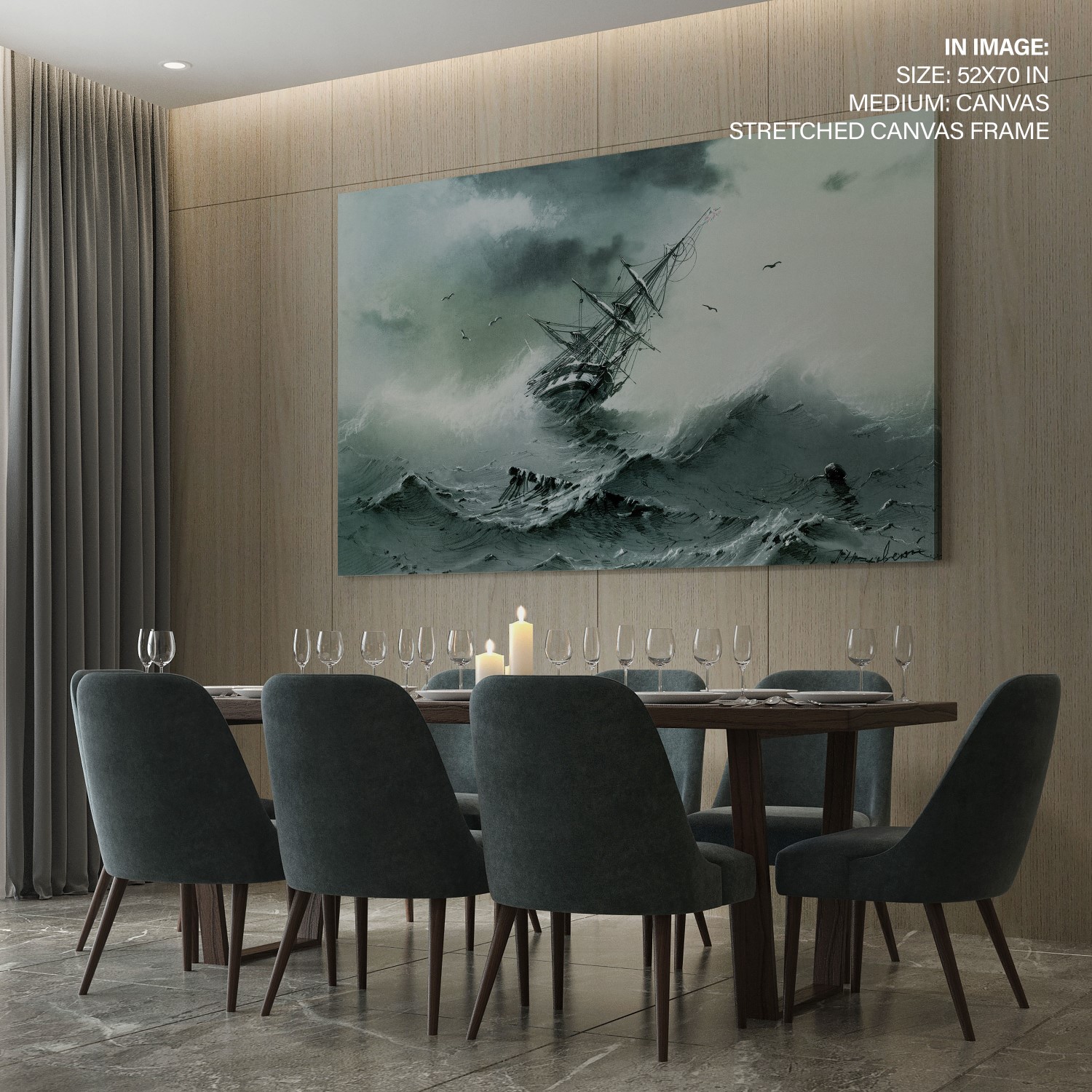 We recommend using Canvas for prominent living spaces (living room, dining hall, bedrooms), Metal/Glass for modern aesthetics, and Art Paper for galleries, bathrooms, kitchens, and other less formal areas.
