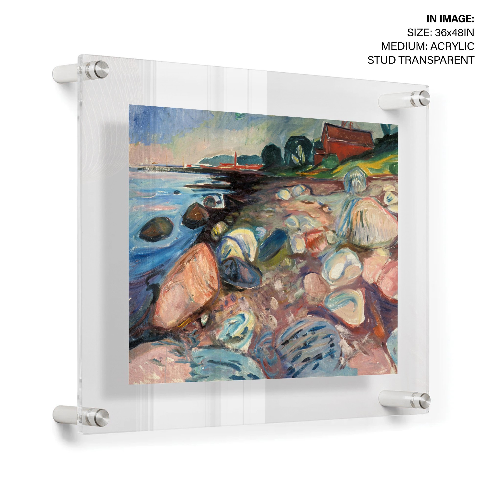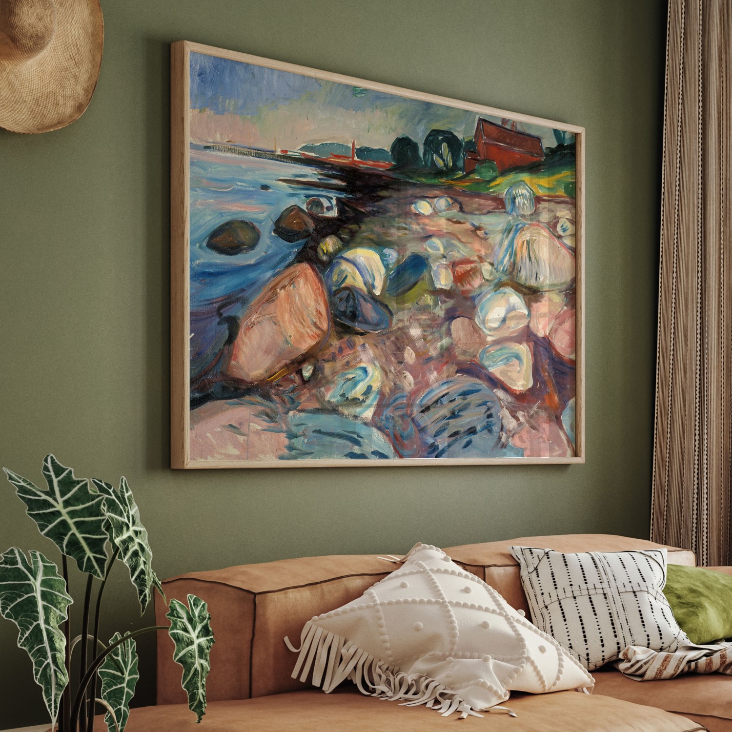 In the painting ‘Shore with Red House’ from 1904 Munch once again repeats the beach motif from Aasgaardstrand, that played an important part in the picture series ‘Frieze of Life’ from the 1890’s. Munch has himself said that ‘walking through Aasgaardstrand is like strolling through my pictures – I really feel like painting when I’m in Aasgaardstrand…’. Munch leased a summer house here during the summers of 1889 and 1890, before getting his very own in 1897. The landscapes Munch painted in the 20th century, show that the images of humans had given way to nature’s own monumental serenity.