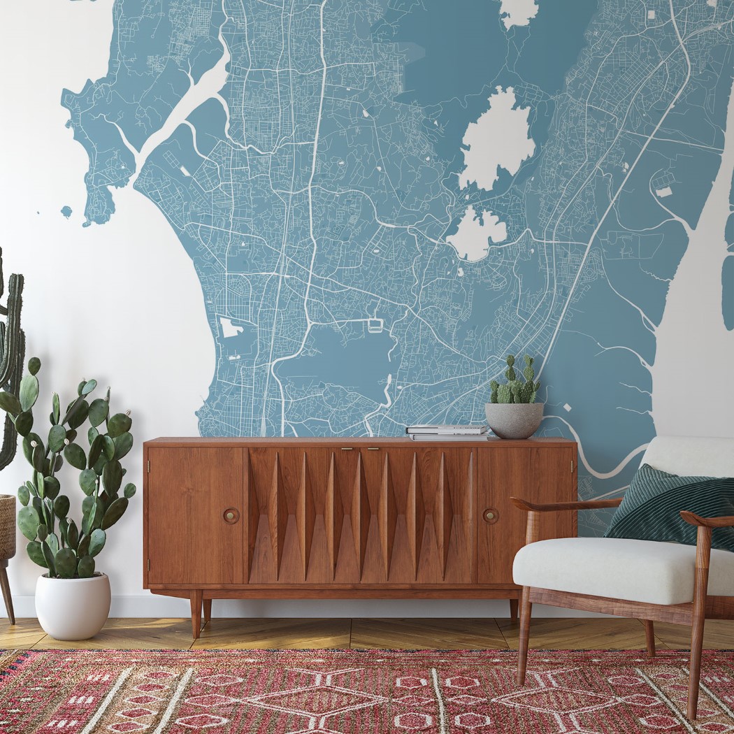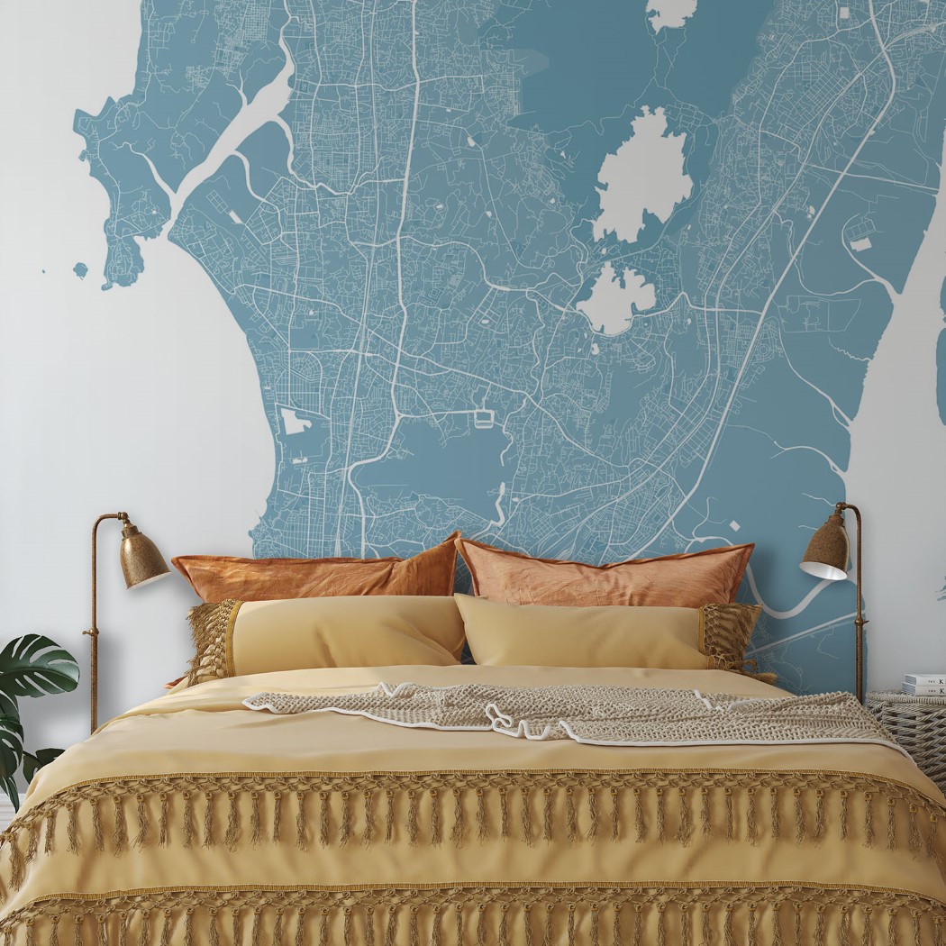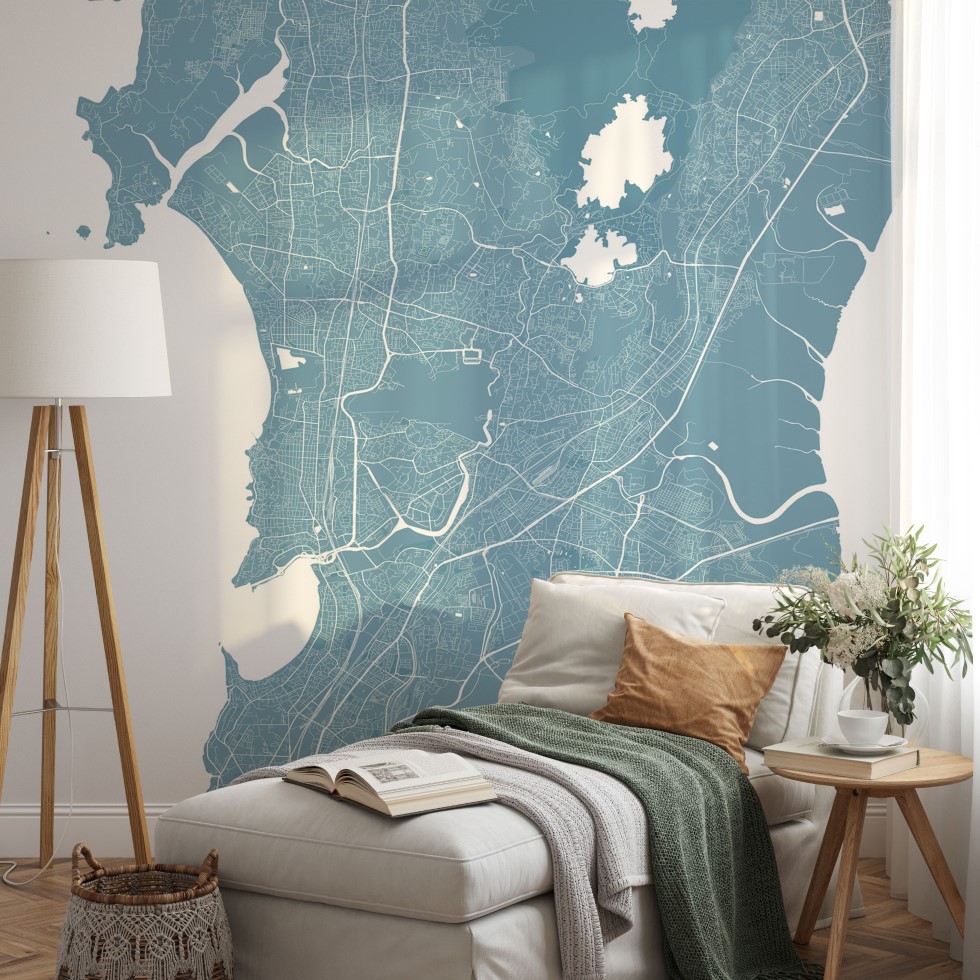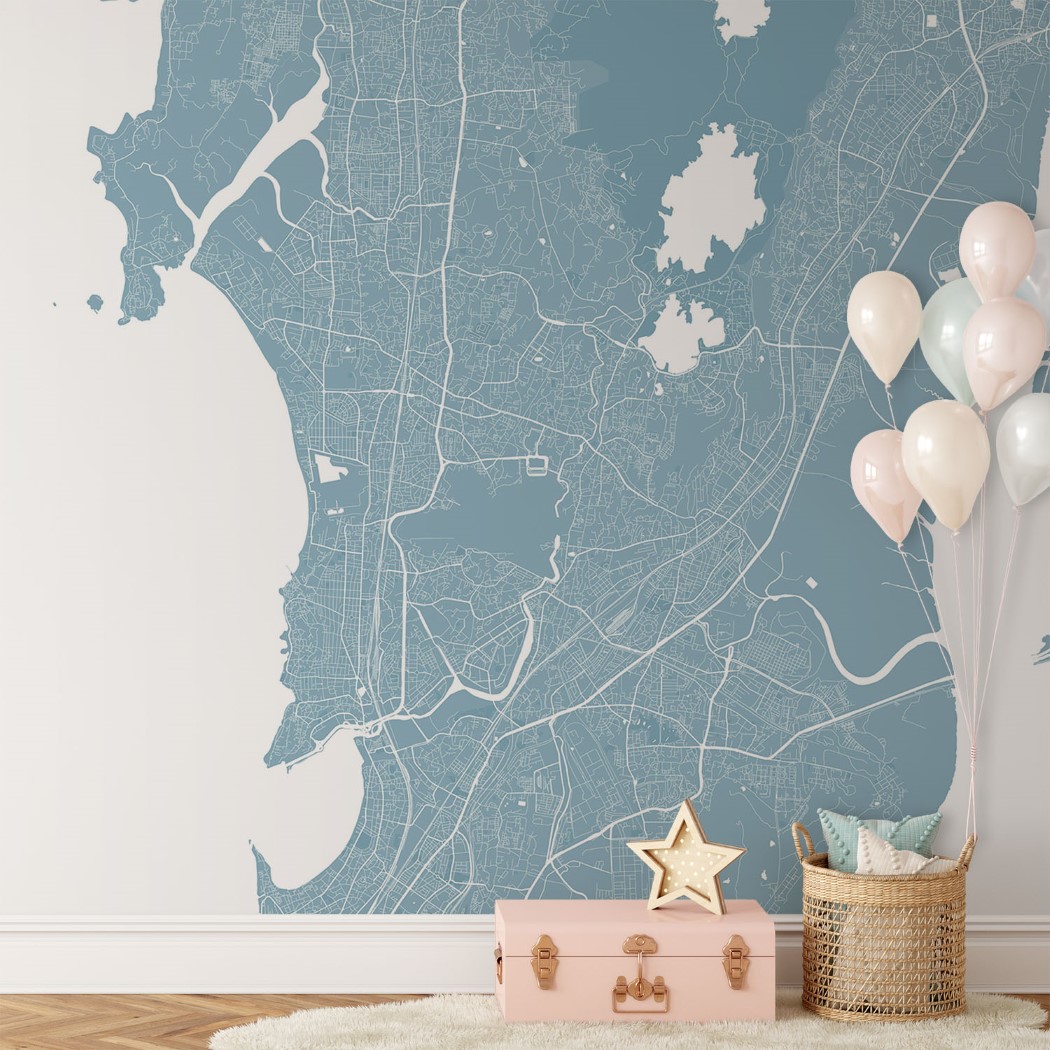 Mumbai Map Wall Mural – Sky blue, Mural Wallpaper, PVC Free, Non-Toxic