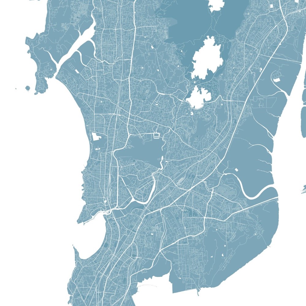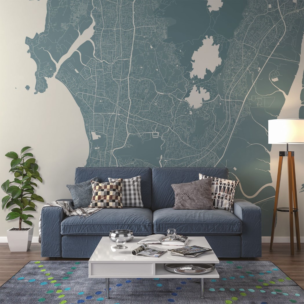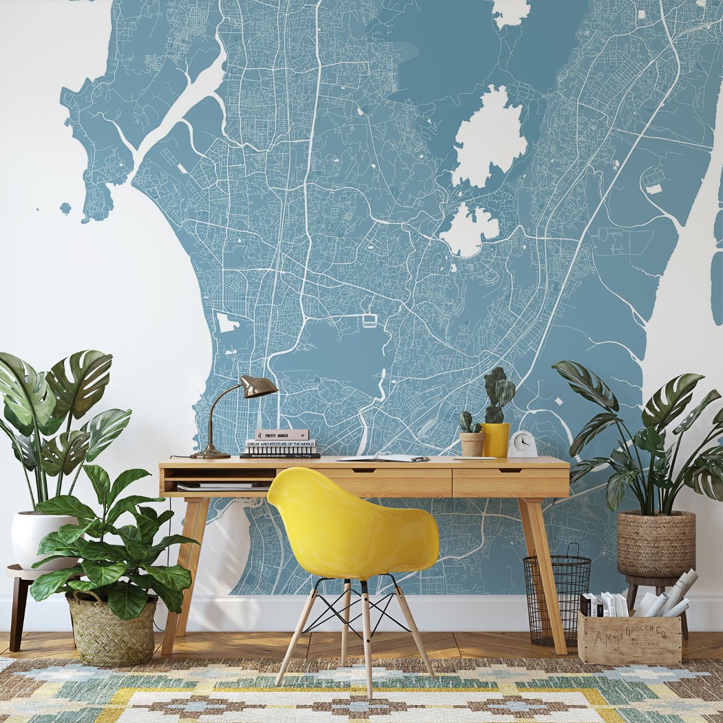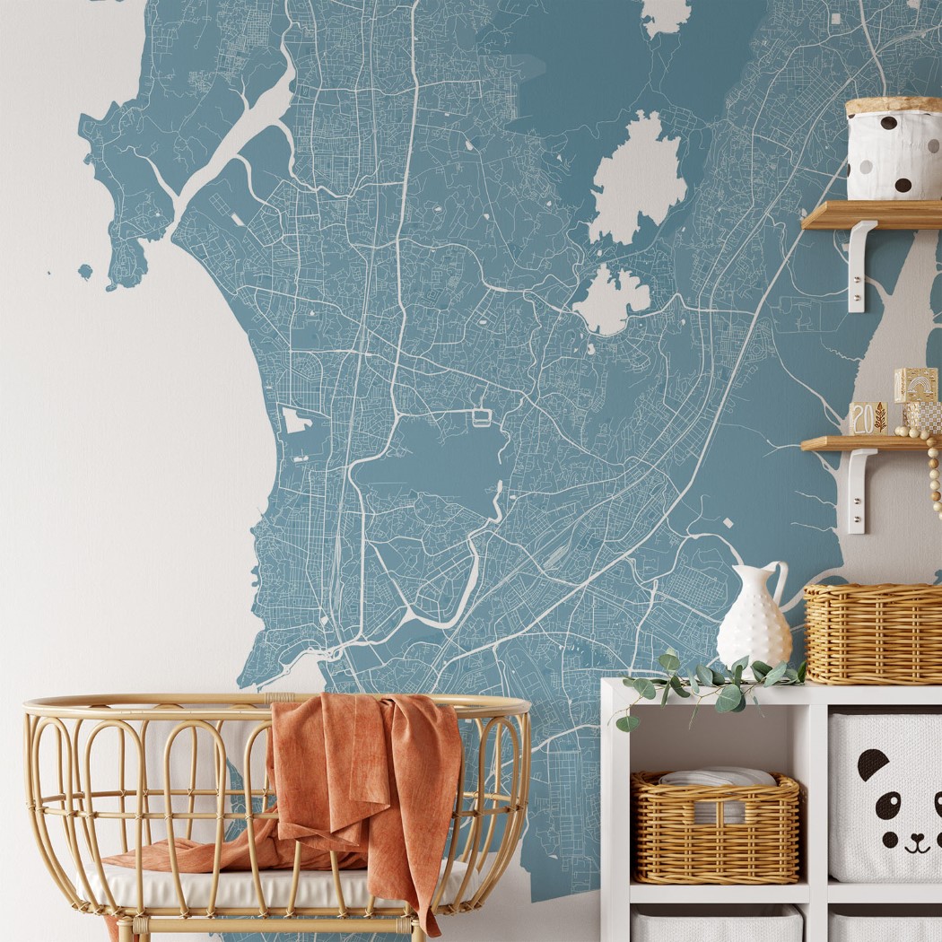 Mumbai Map Wall Mural – Sky blue, Mural Wallpaper, PVC Free, Non-Toxic