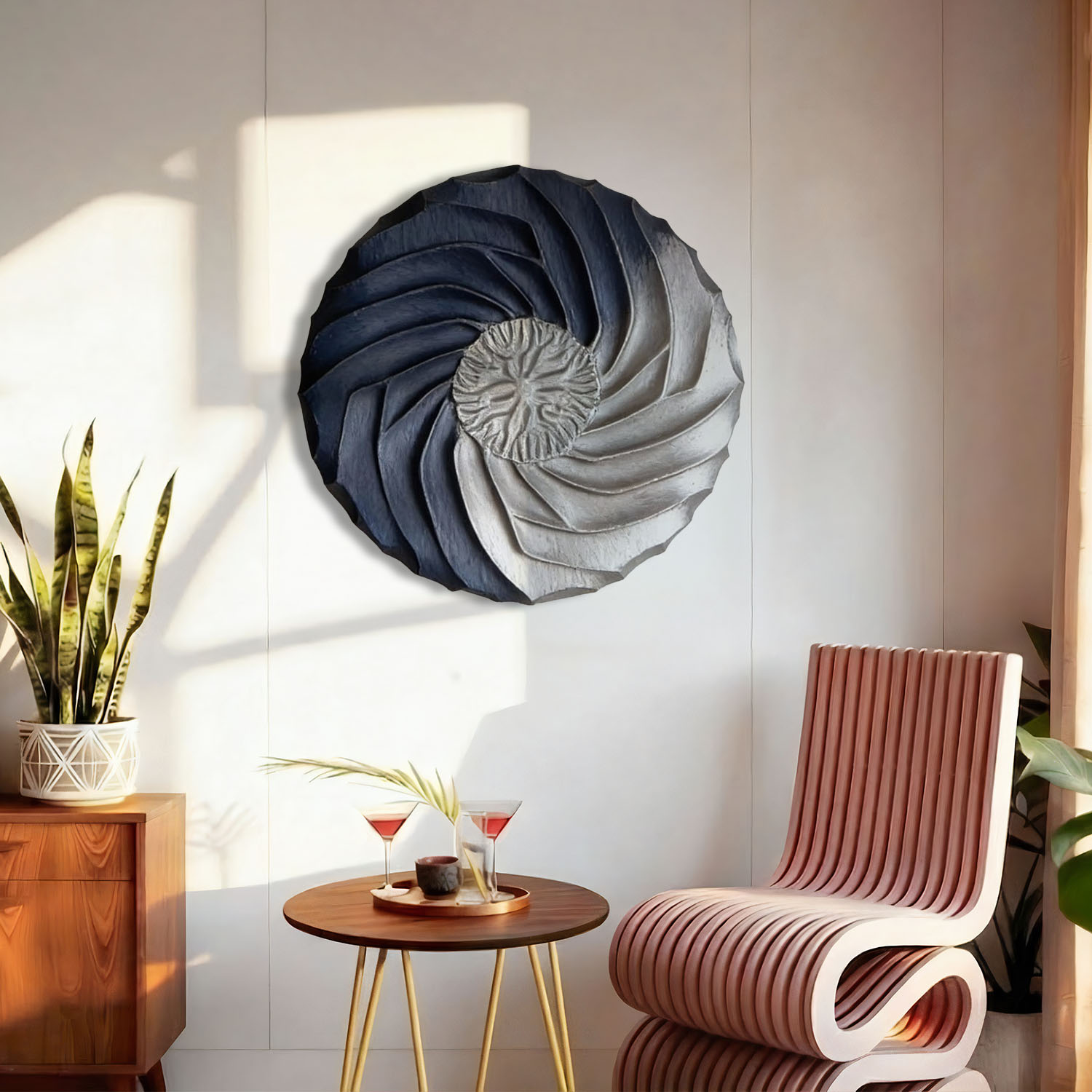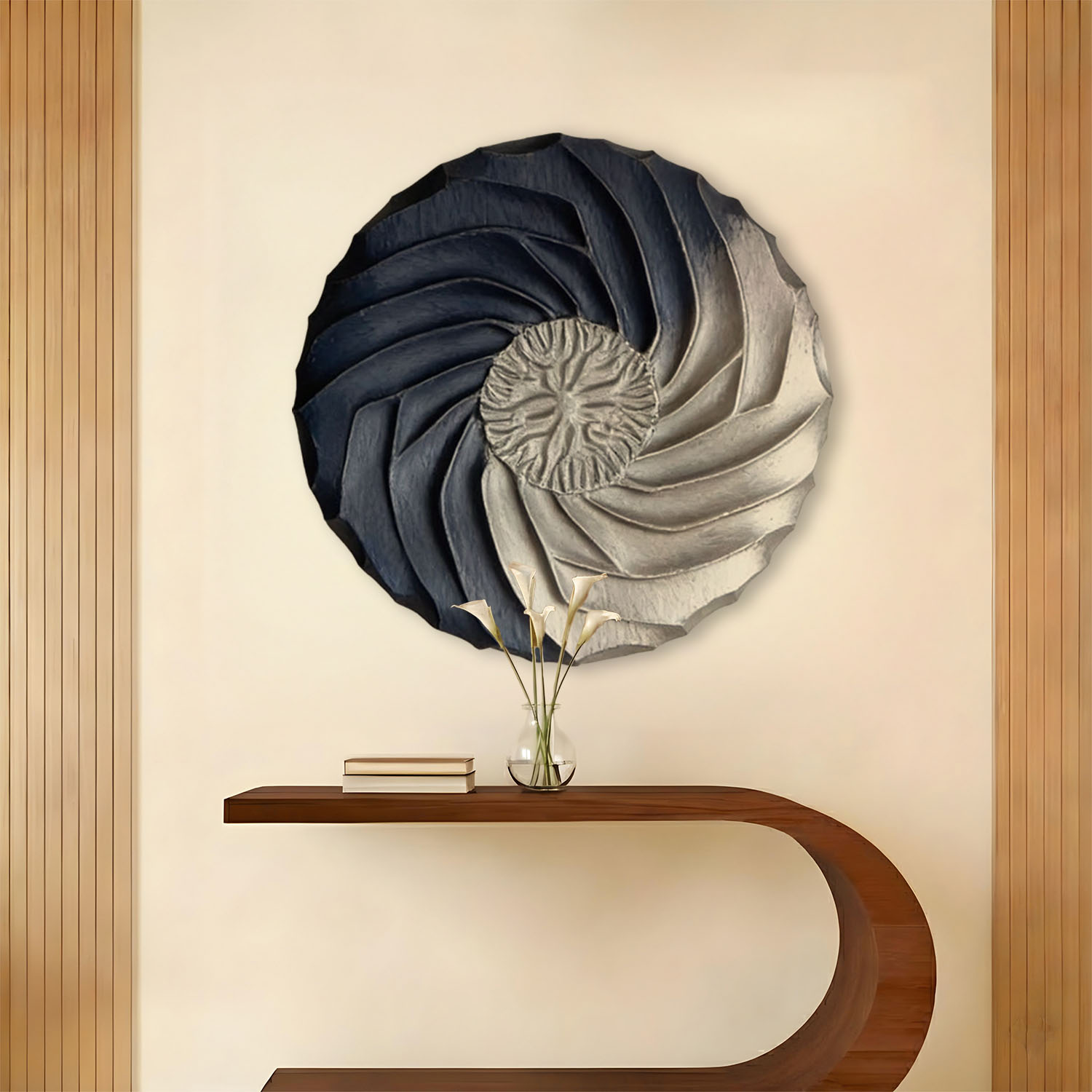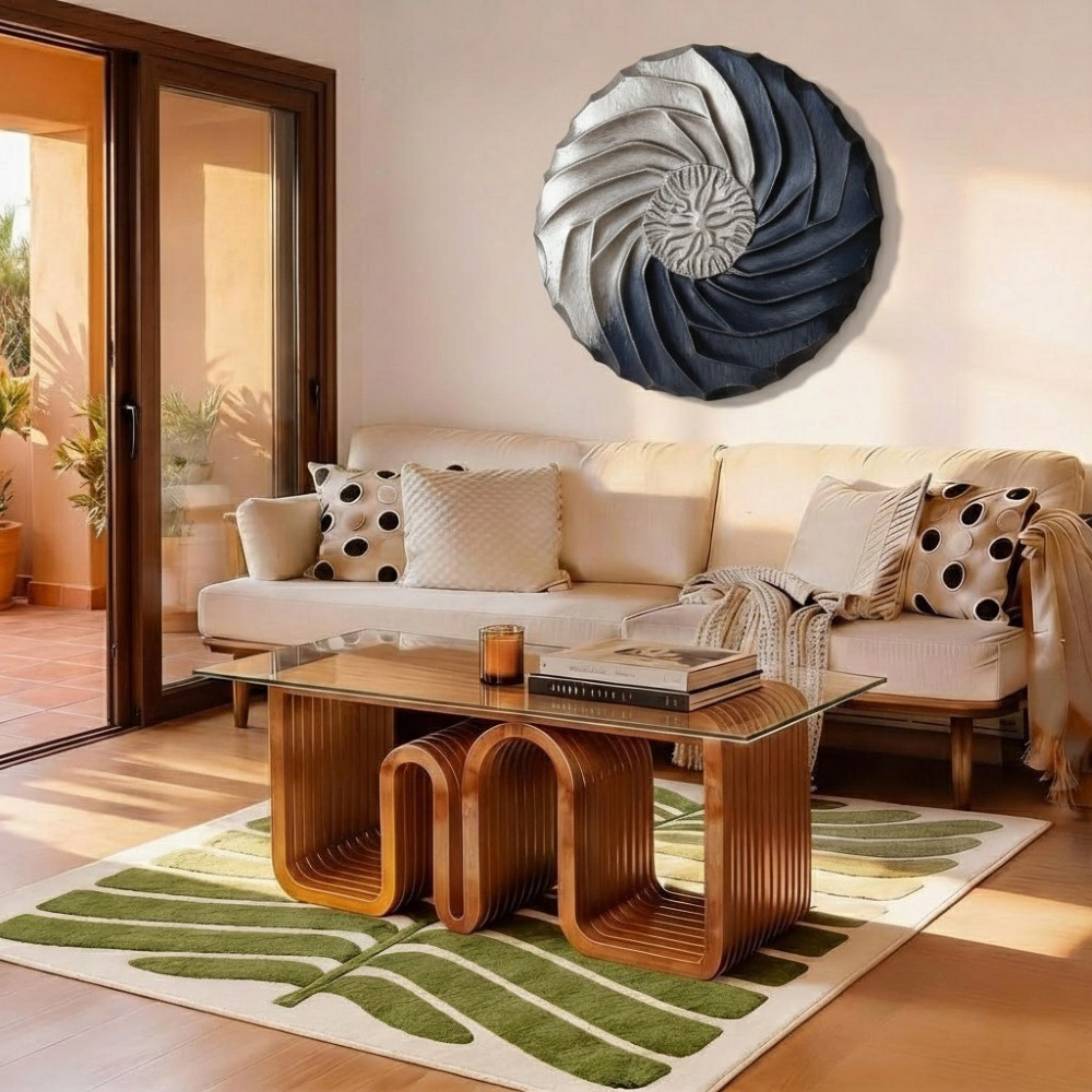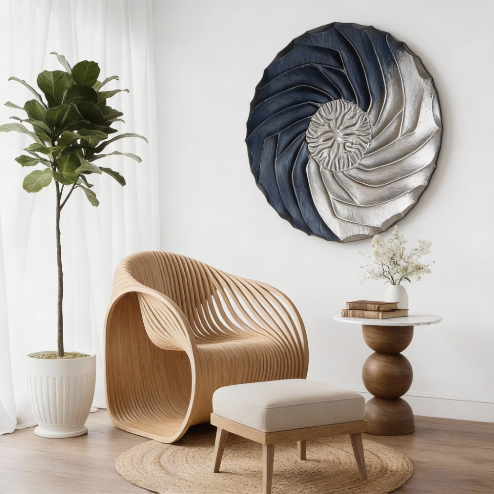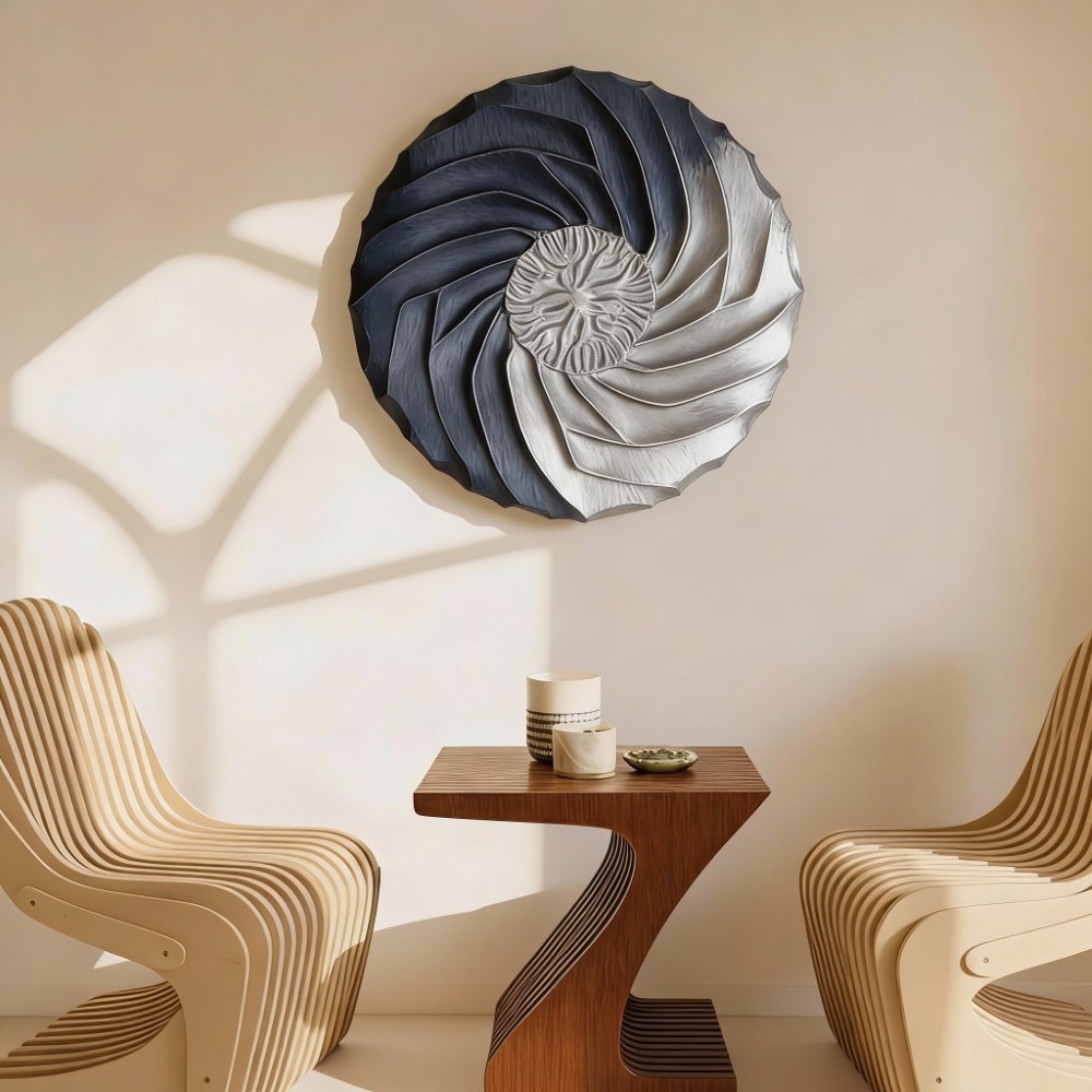 Spiral Symphony: A Modern Fusion – 3d Wooden Wall Sculpture