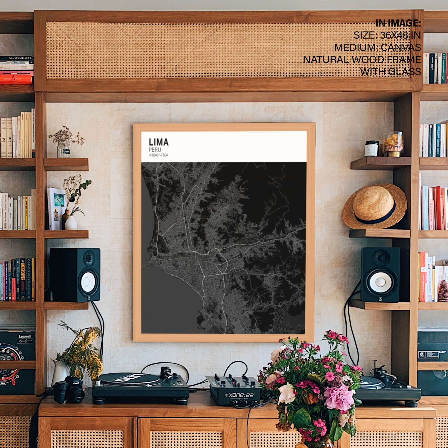 Strip above poster black map of Lima