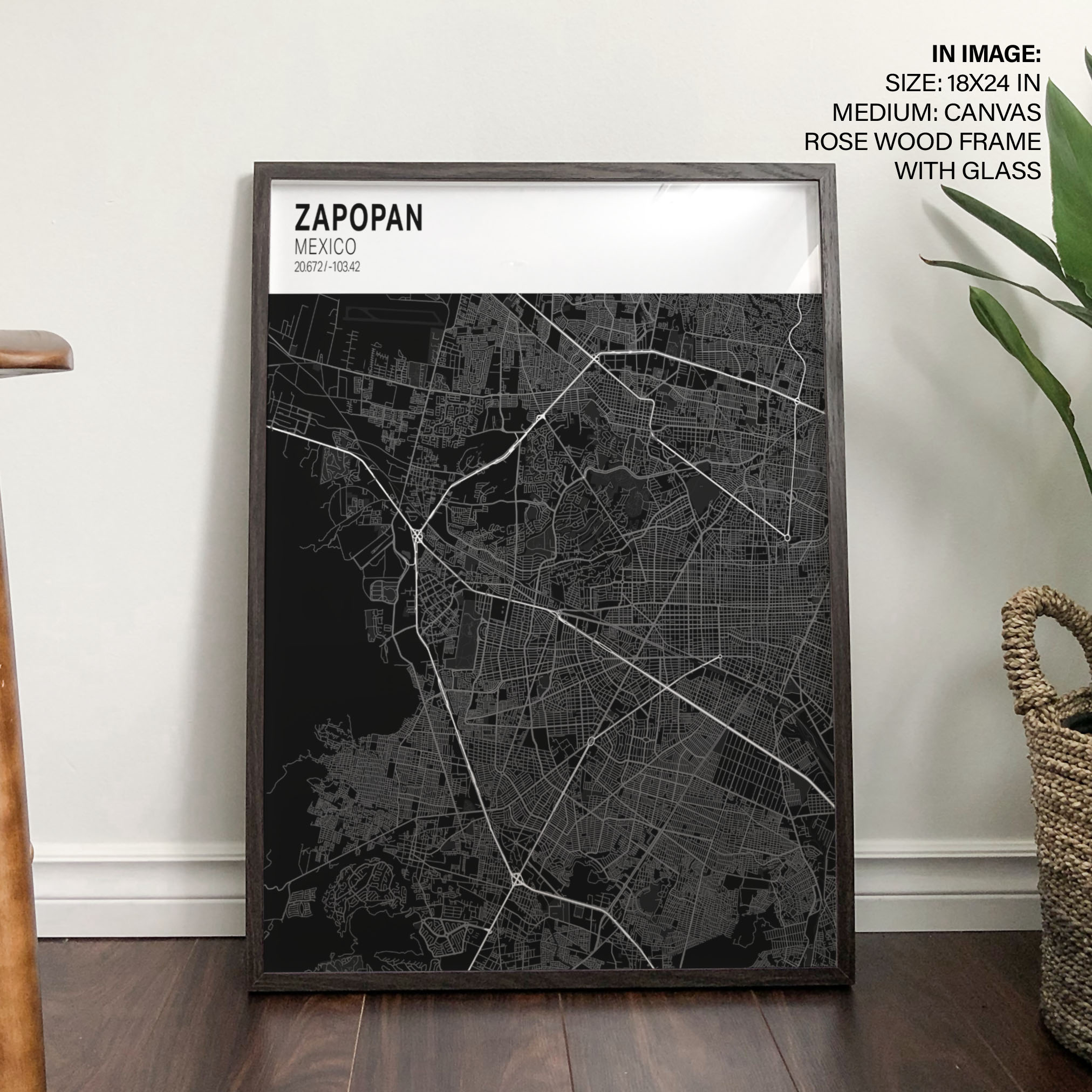 Strip above poster black map of Zapopan