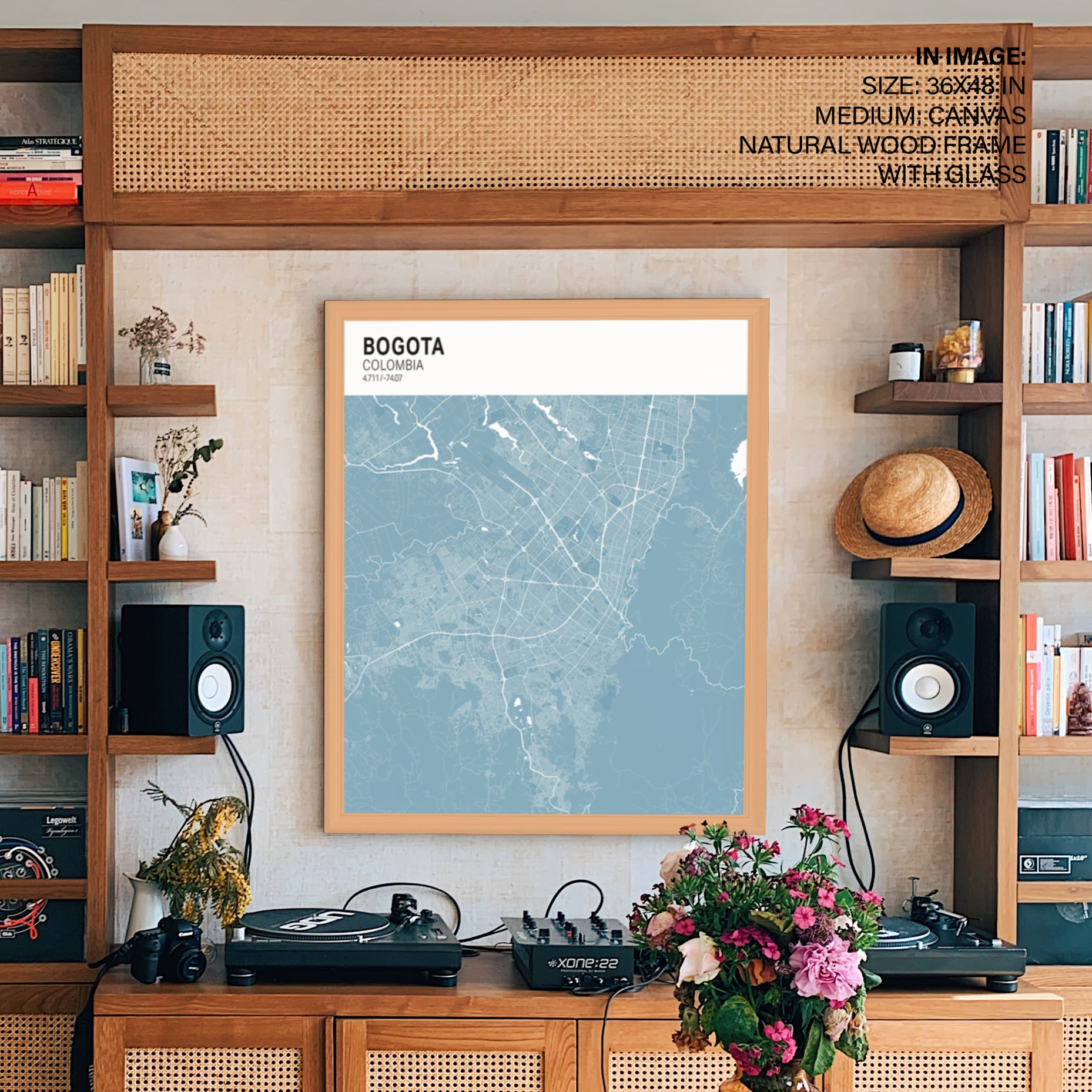 Strip above poster sky blue map of Bogota
