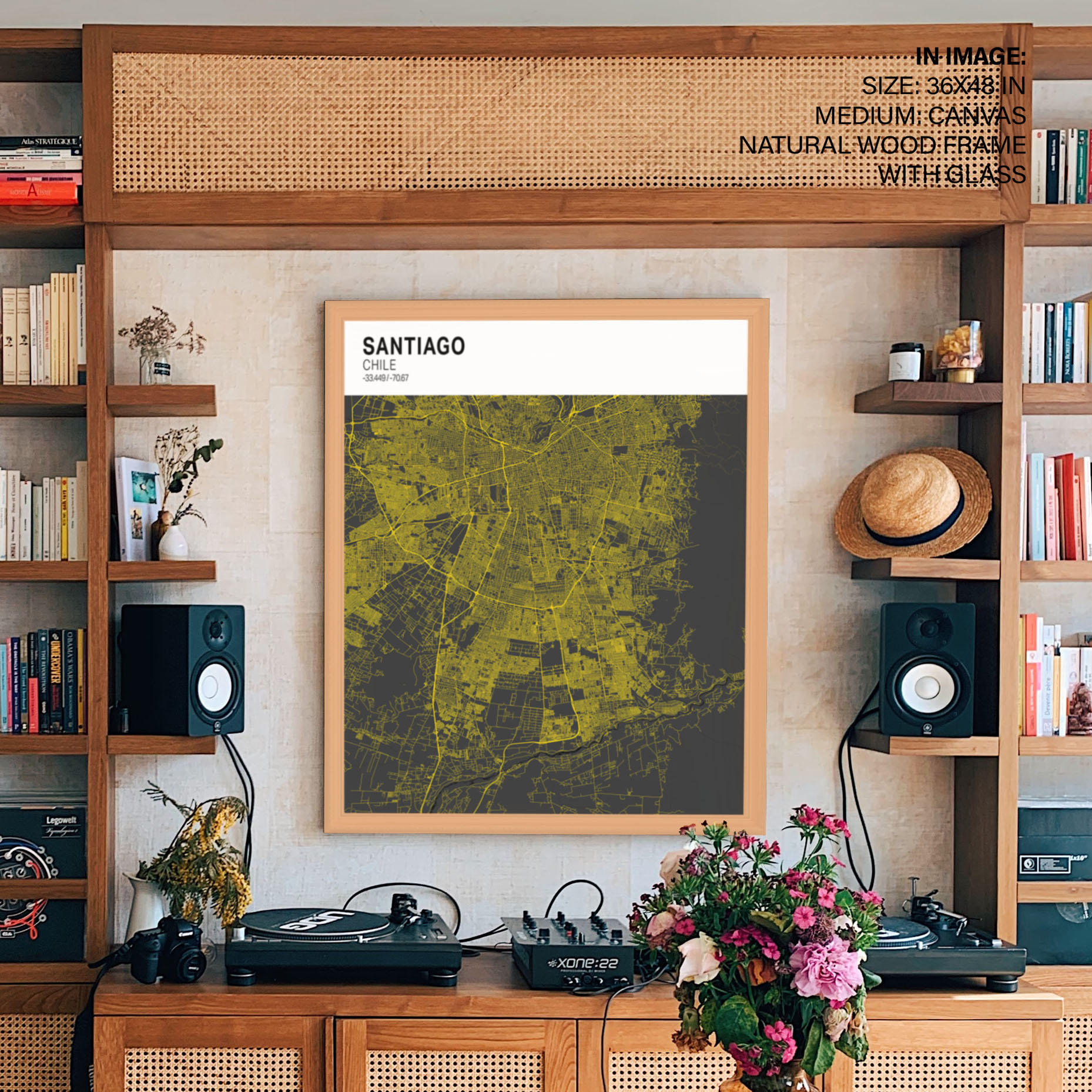 Strip above poster white map of Santiago
