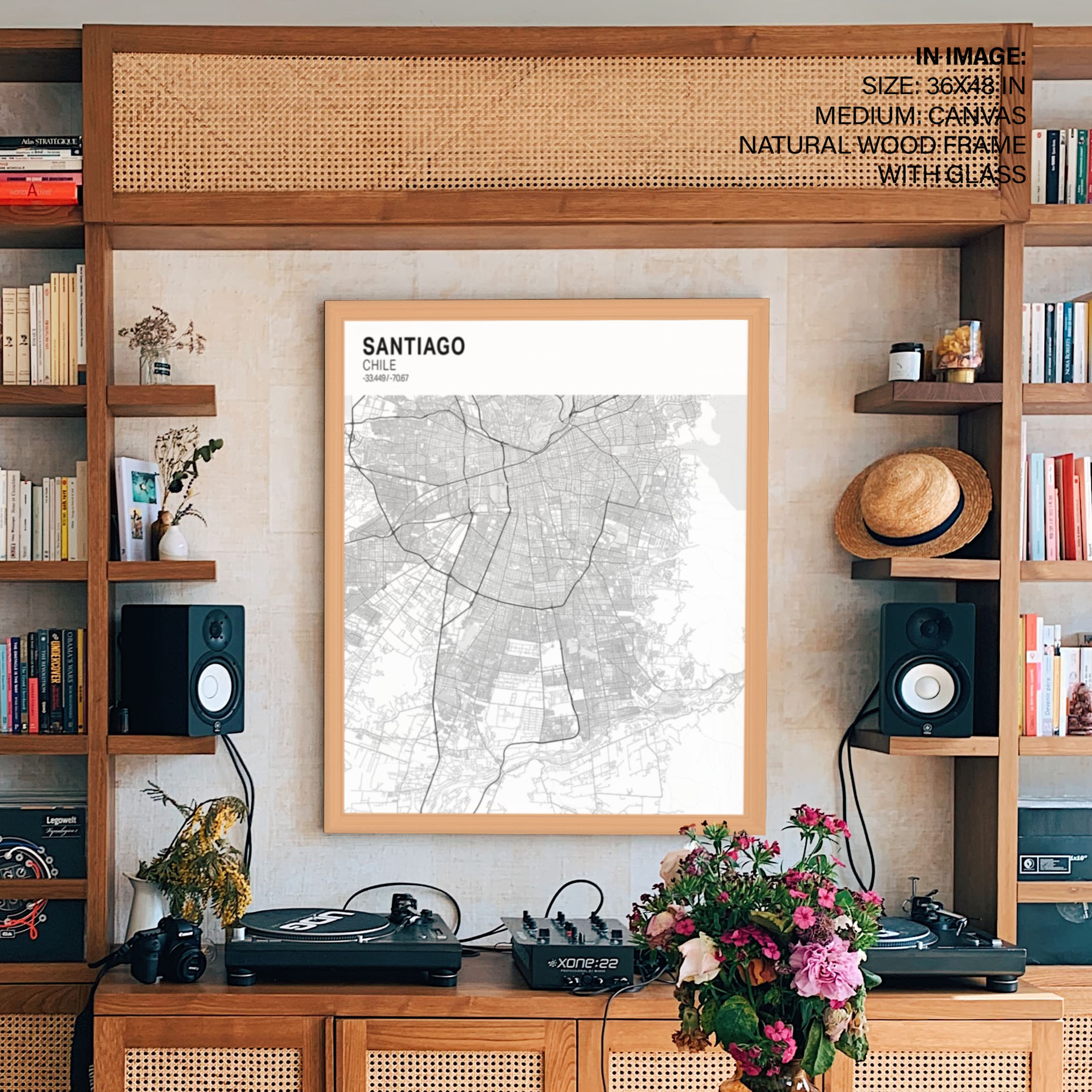 Strip above poster yellow map of Santiago