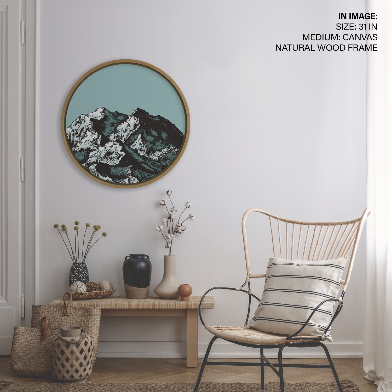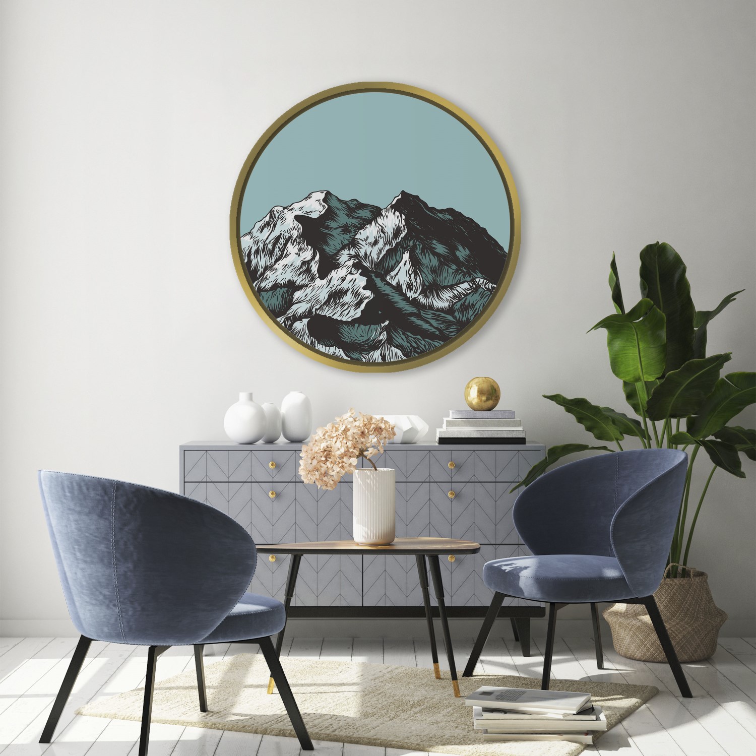 Stroky indigo mountains – Circular Wooden Frame