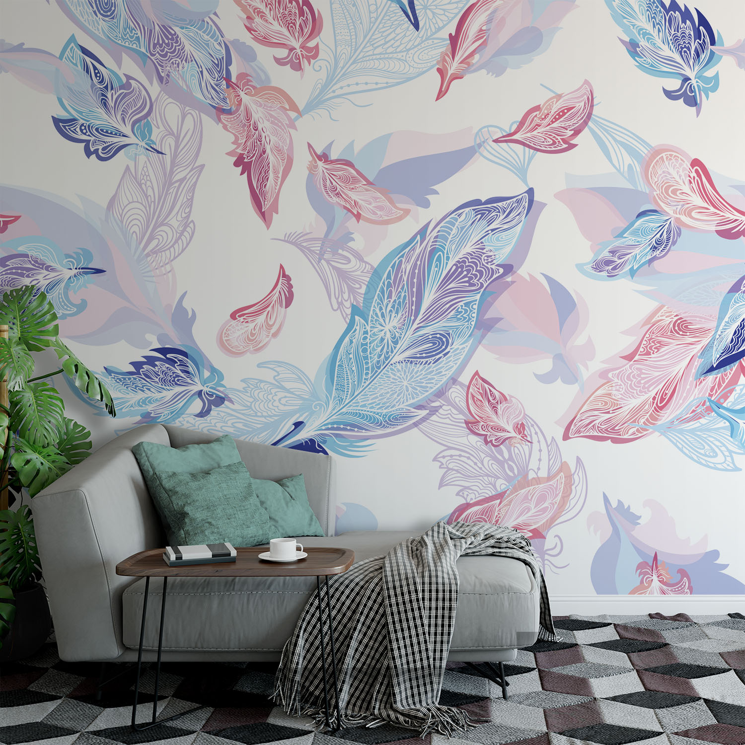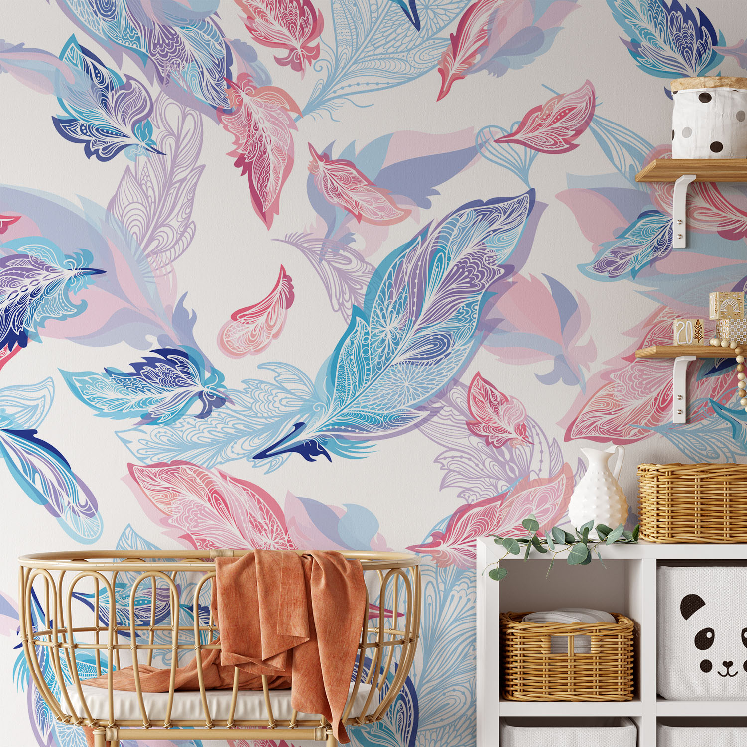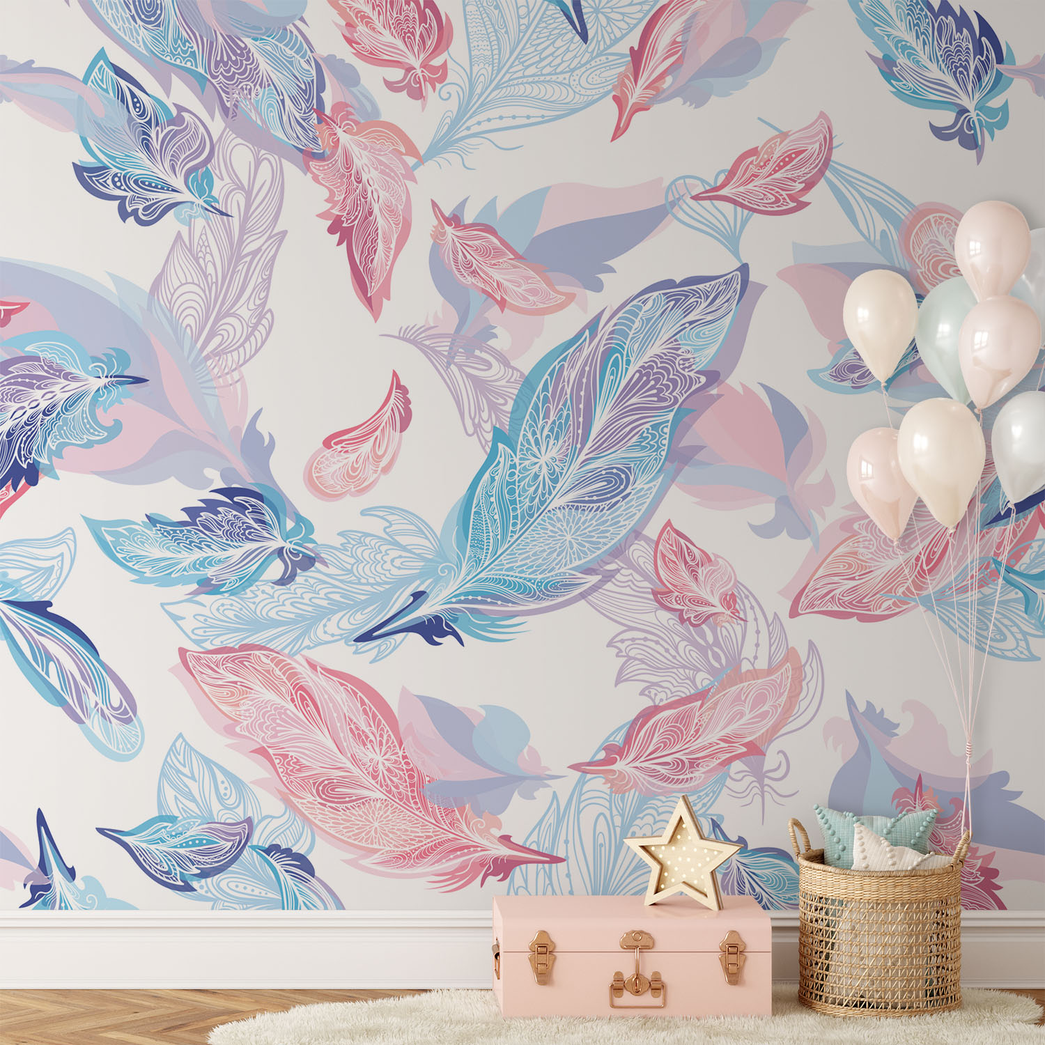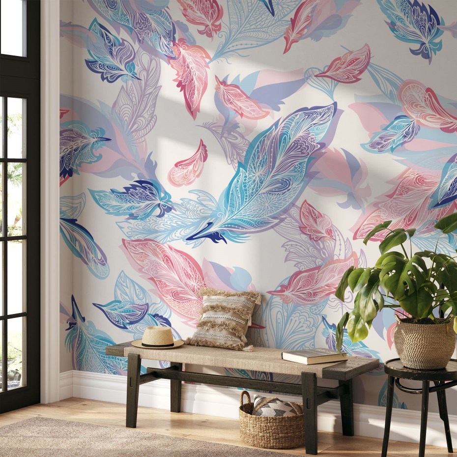 Sweet lilac & pink feathers – Wall Mural, PVC free Wall Covering
