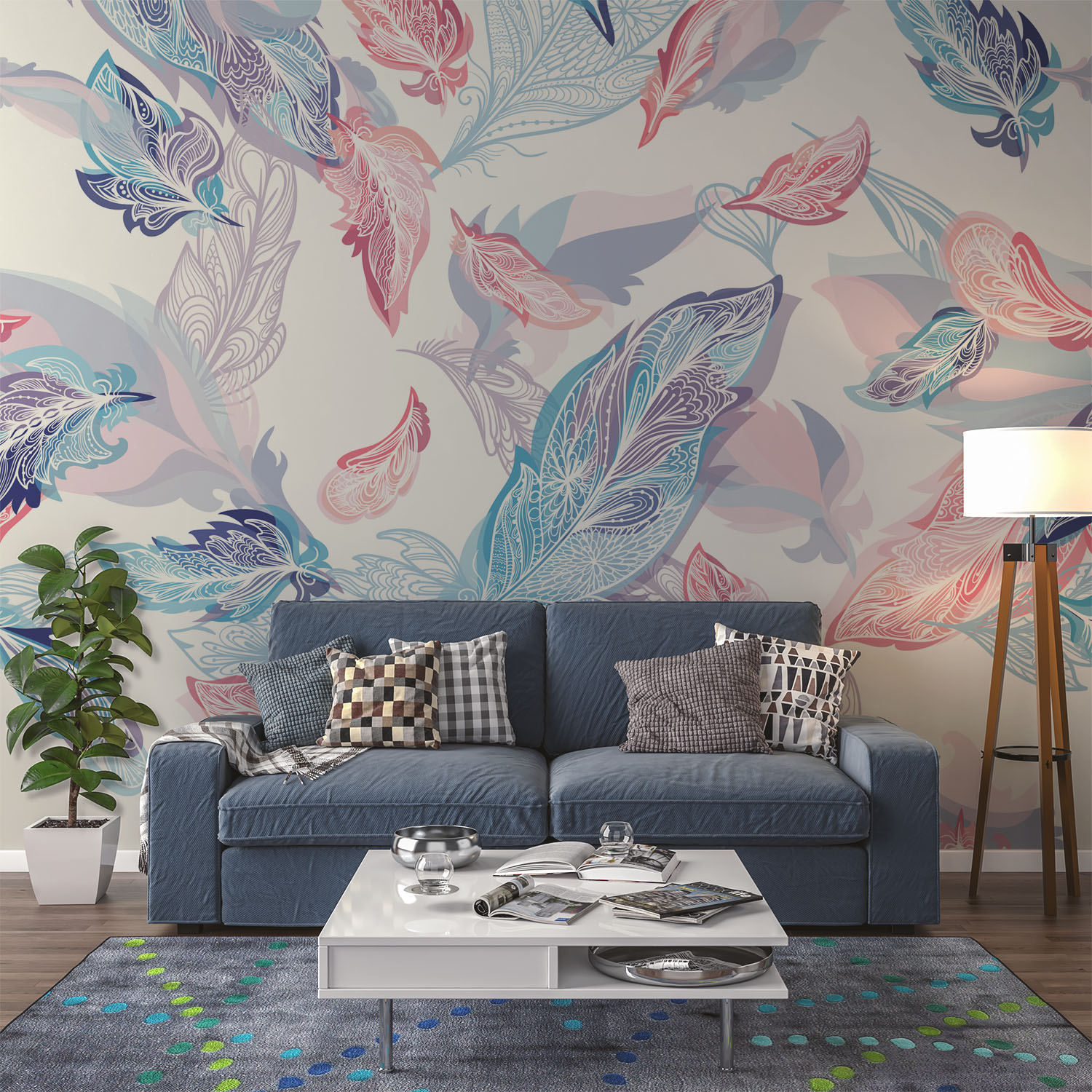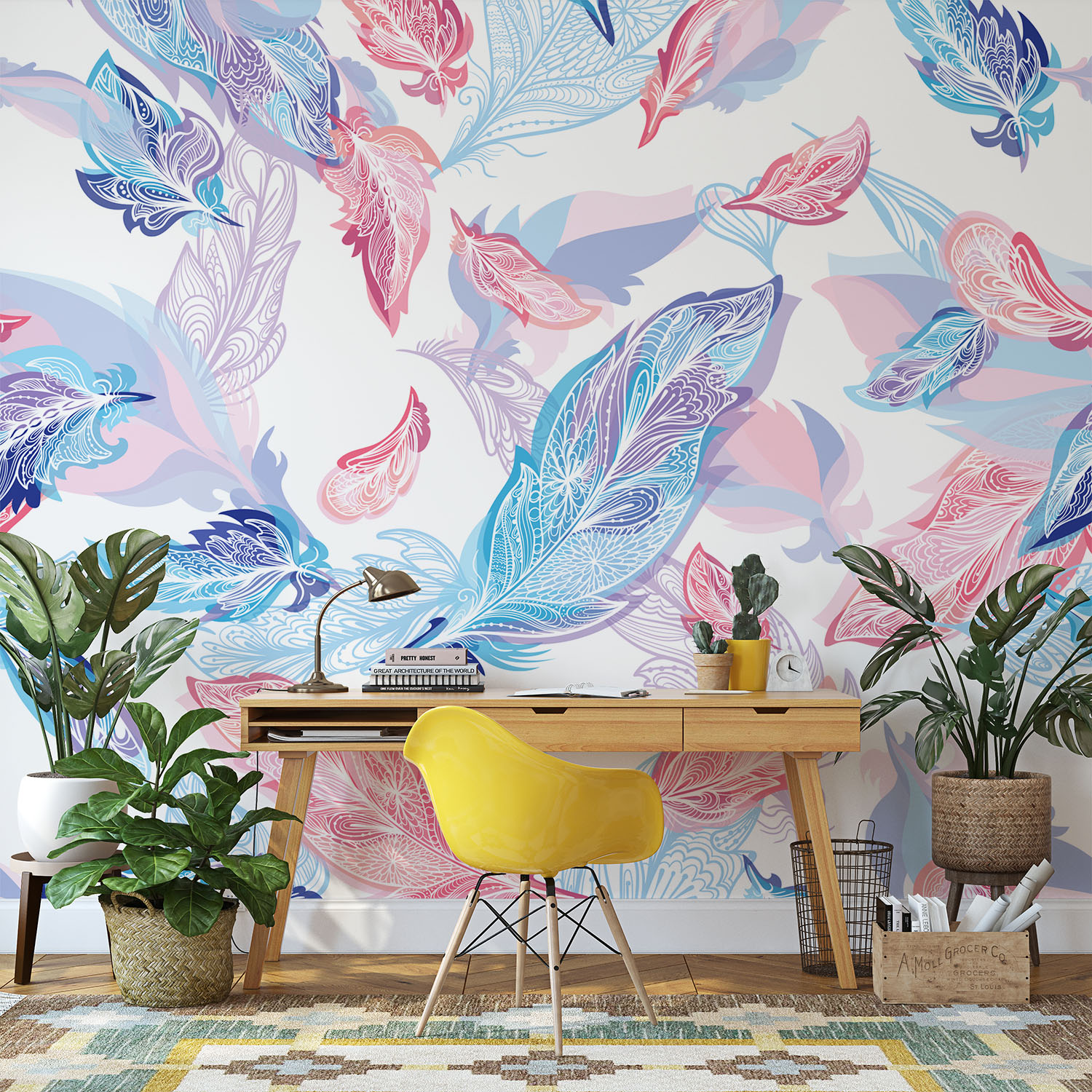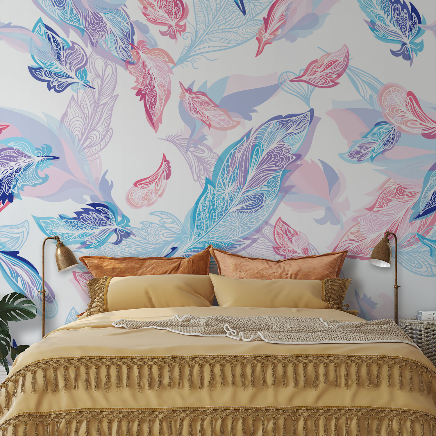 Sweet lilac & pink feathers – Wall Mural, PVC free Wall Covering