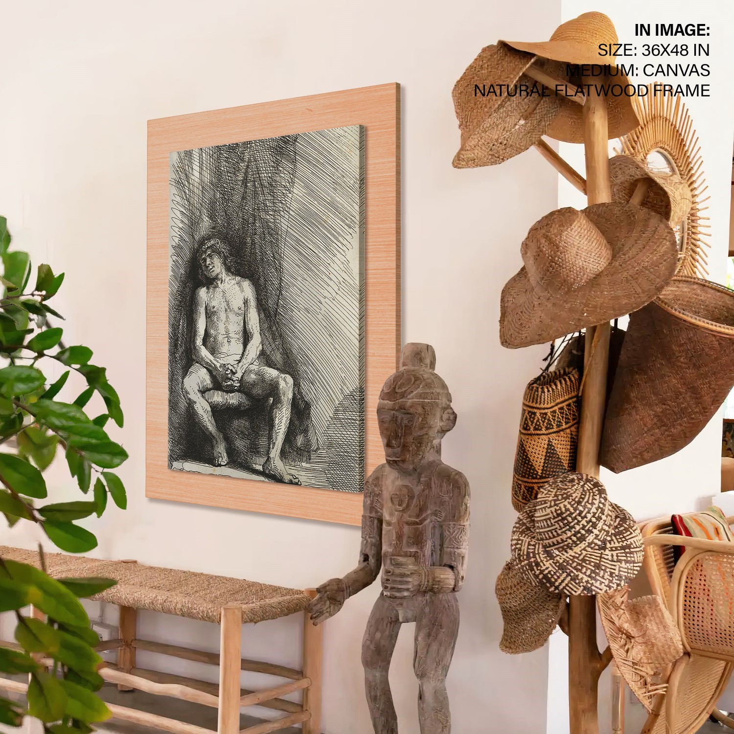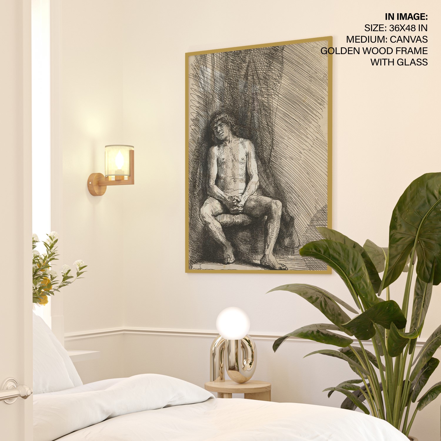 Be the first to review “Nude man seated before a curtain by Rembrandt (1646)”