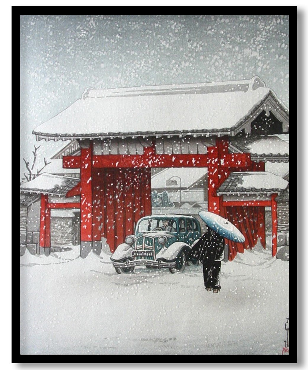 Snow at Shiba Daimon by Hasui Kawase (1936)