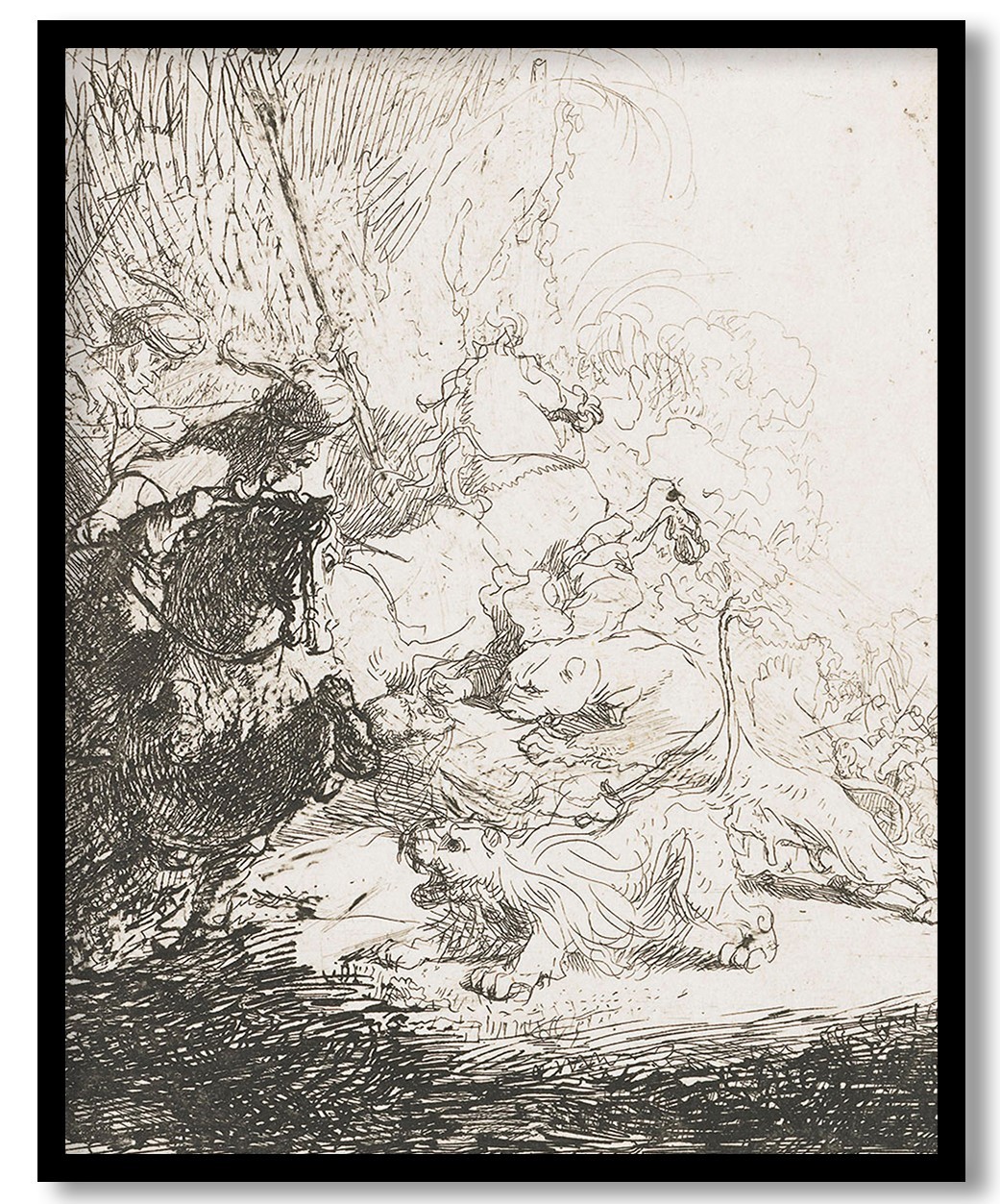 The small lion hunt with two lions by Rembrandt (1629)