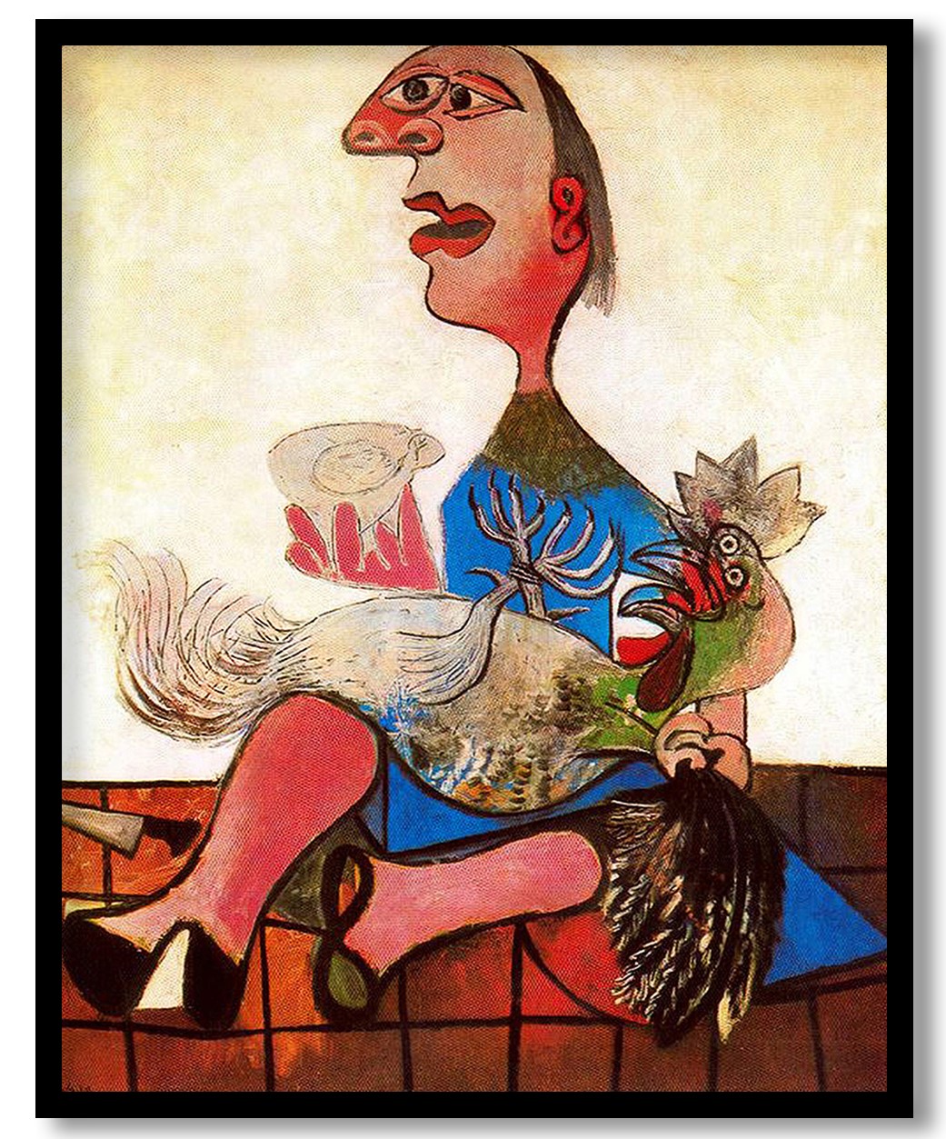 Woman with cockerel by Pablo Picasso (1938)