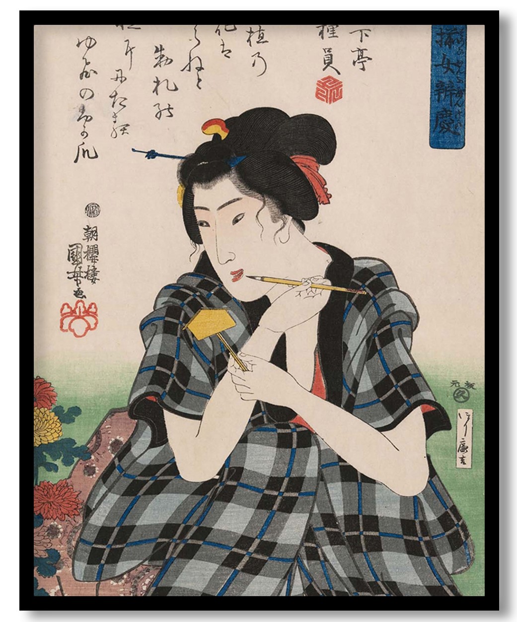 Be the first to review “Writing a Label for Chrysanthemums by Utagawa Kuniyoshi (1844)”