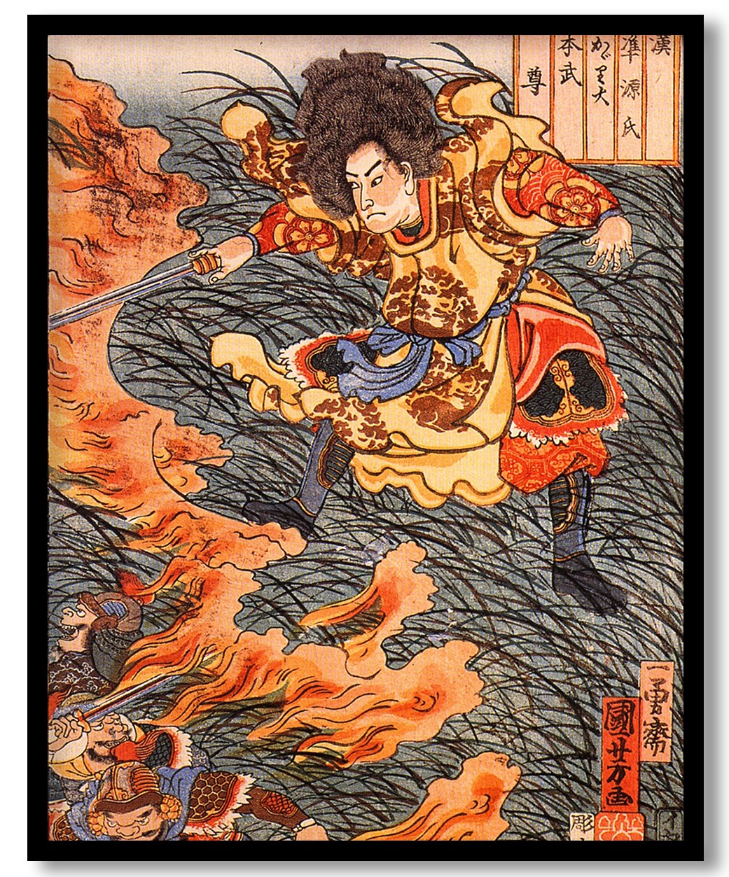 Yamamoto Takeru no Mikoto between burning grass by Utagawa Kuniyoshi (Unknown)