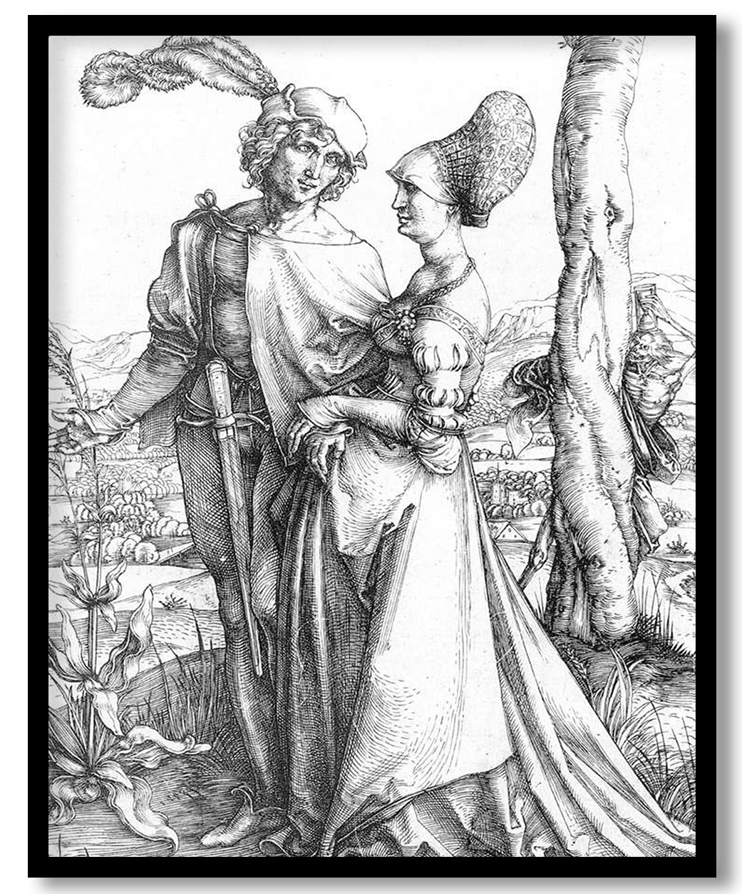 Young Couple Threatened by Death ( Promenade) by Albrecht Durer (1498)