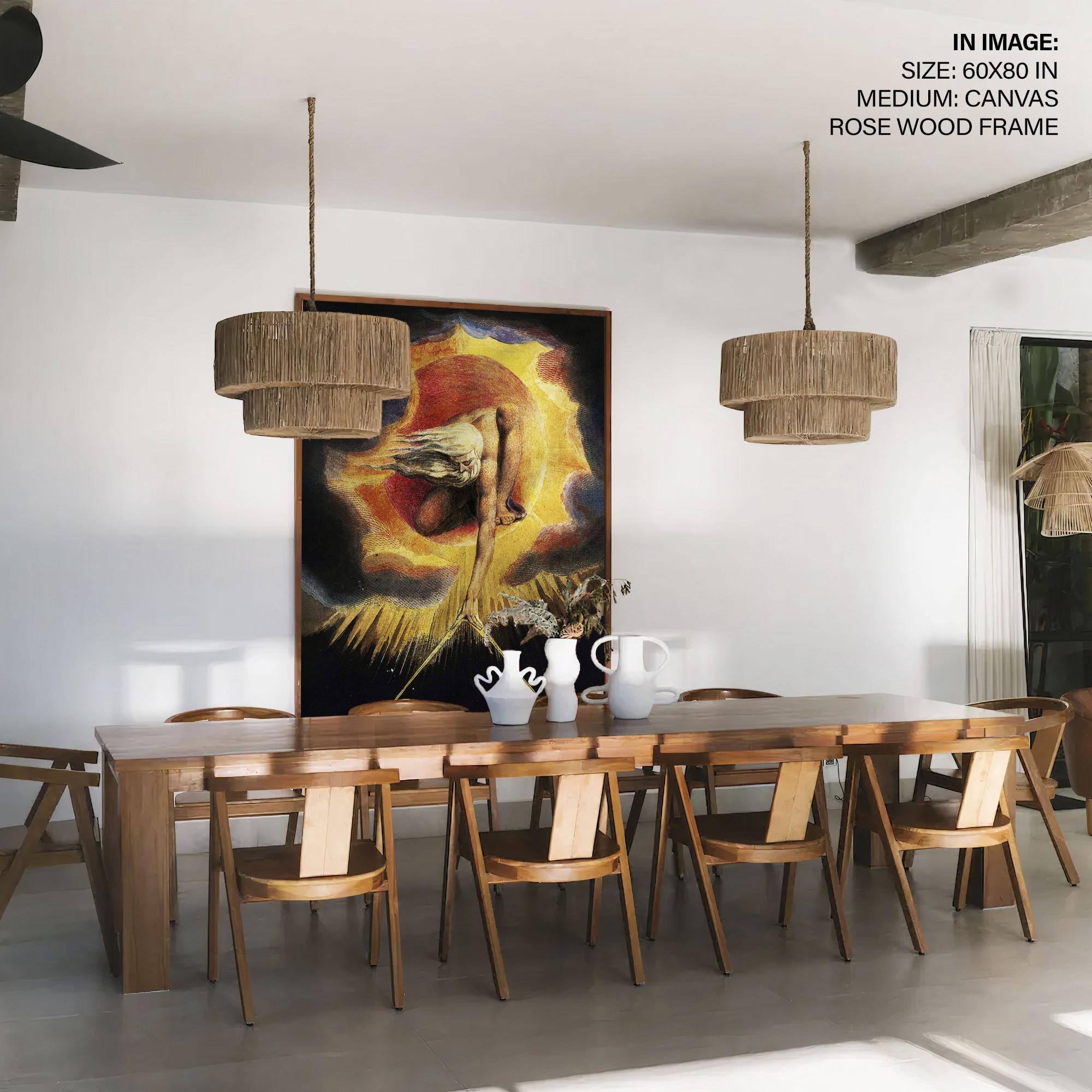 We recommend using Canvas for prominent living spaces (living room, dining hall, bedrooms), Metal/Glass for modern aesthetics, and Art Paper for galleries, bathrooms, kitchens, and other less formal areas.