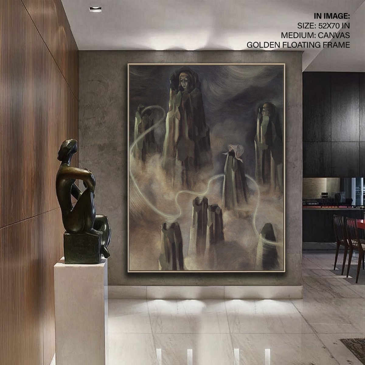 We recommend using Canvas for prominent living spaces (living room, dining hall, bedrooms), Metal/Glass for modern aesthetics, and Art Paper for galleries, bathrooms, kitchens, and other less formal areas.