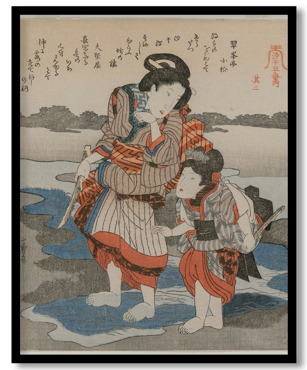 Third Print from A Low Tide Pentaptych by Utagawa Kuniyoshi (1830)