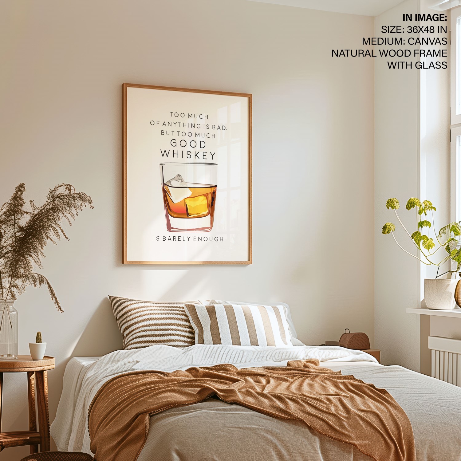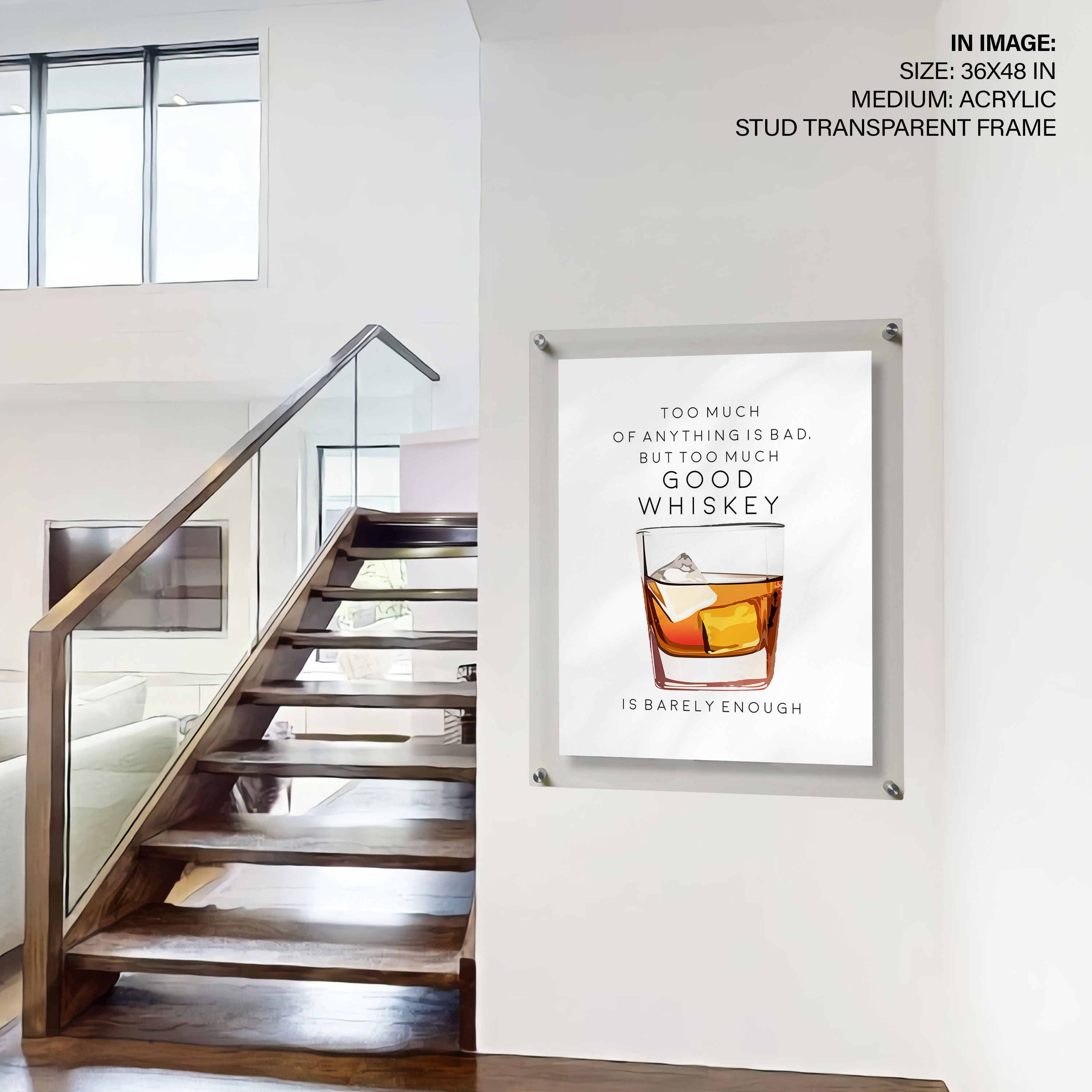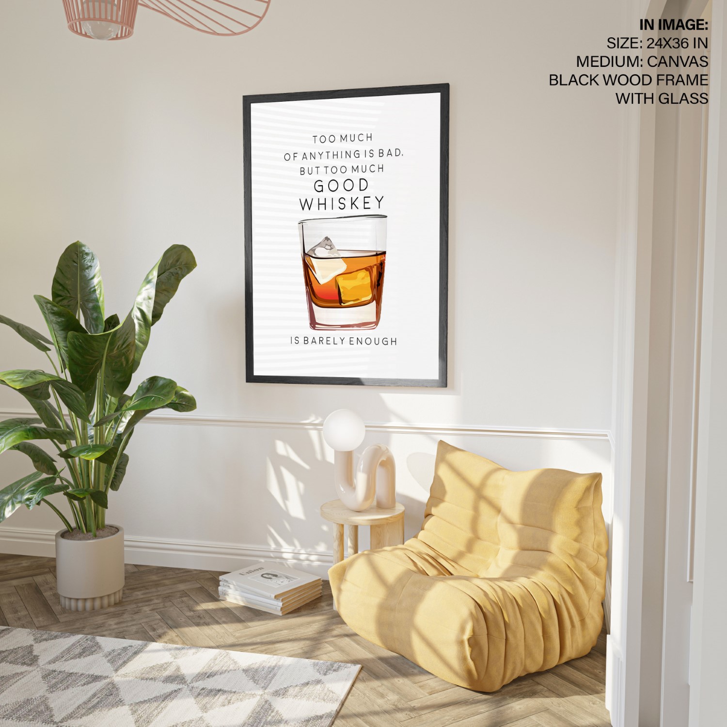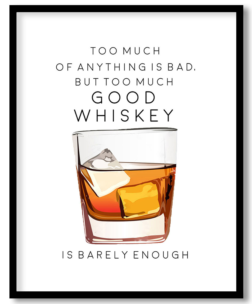 Too Much of Whiskey – Bar Poster, Cocktails, Framed Wall Art – Choose Size & Frame Color