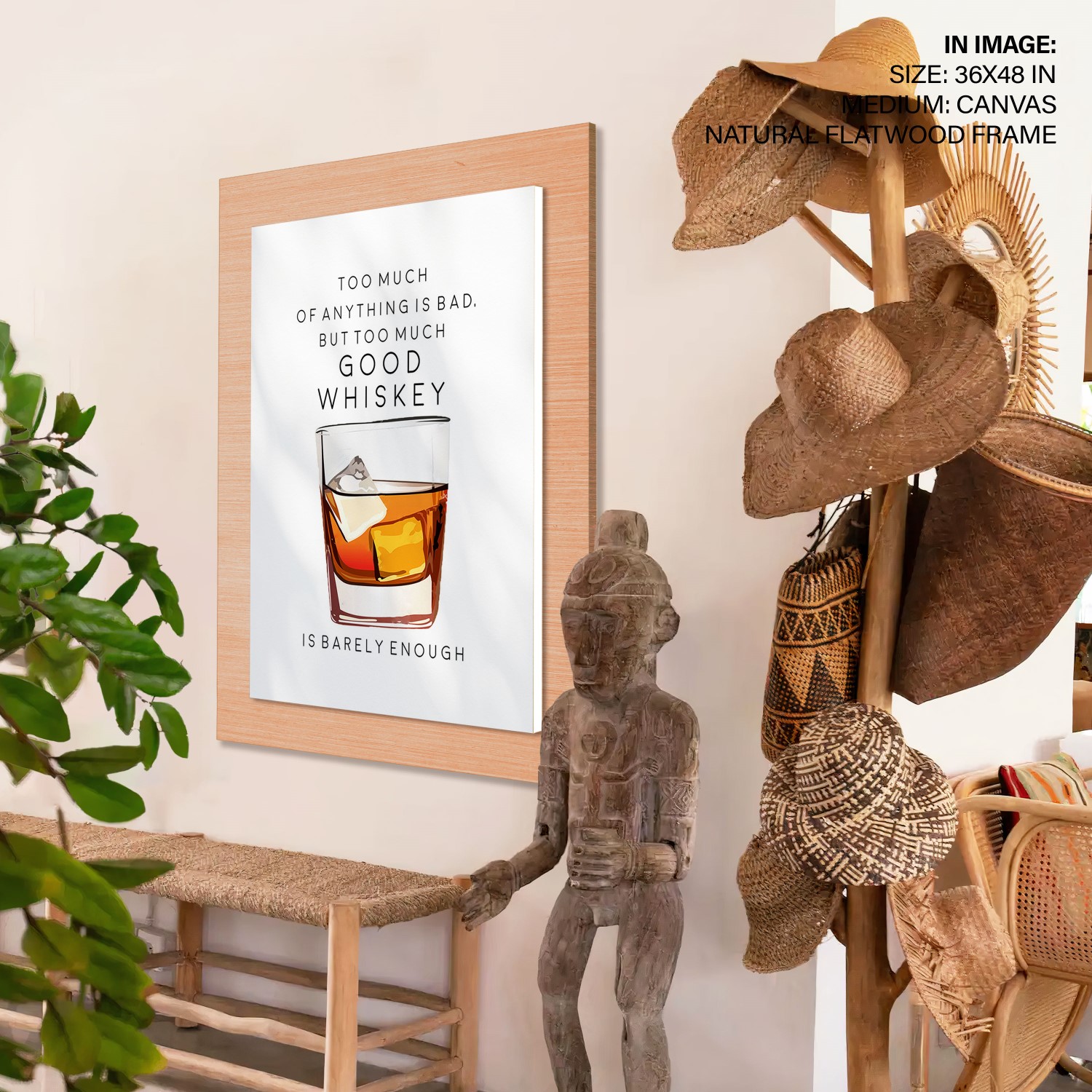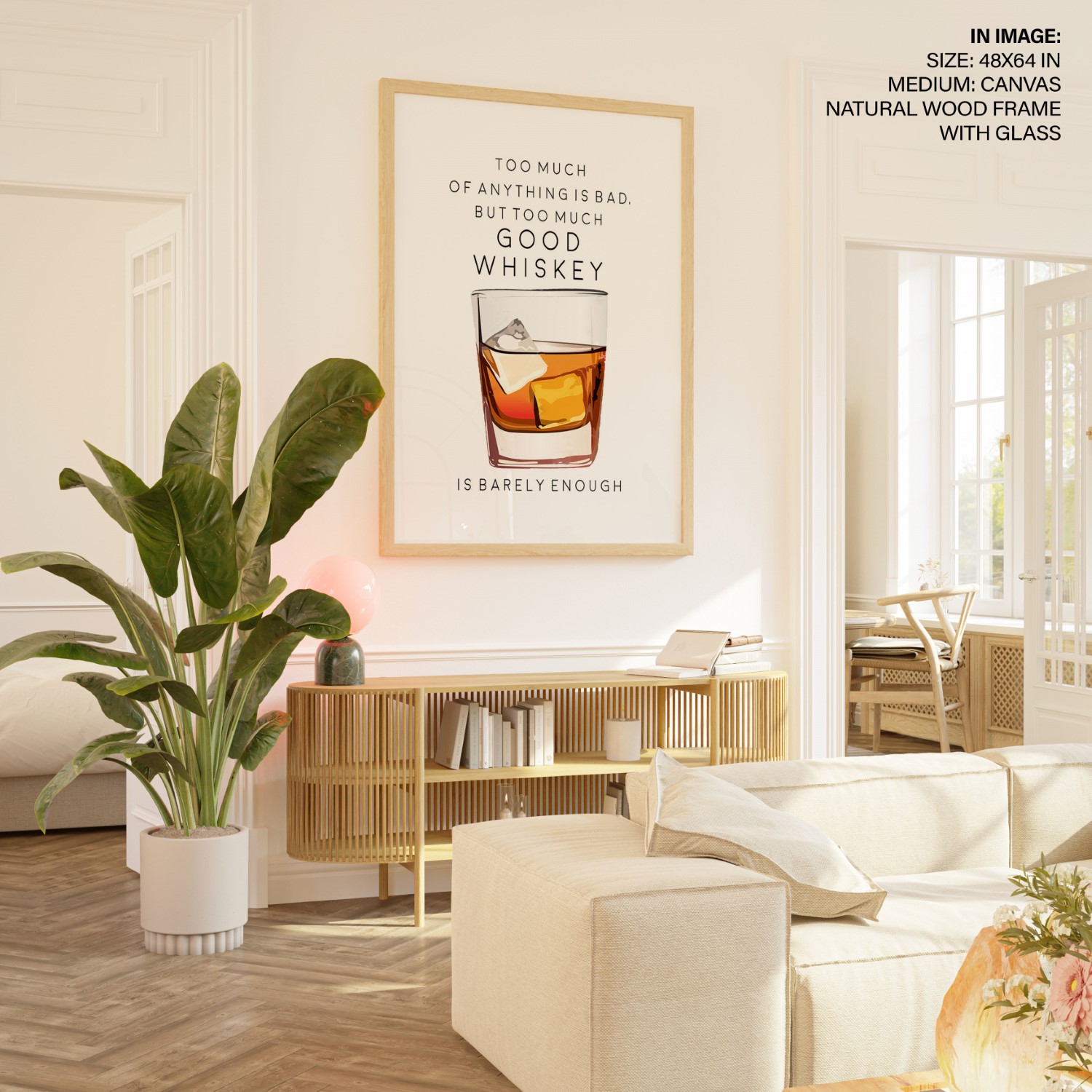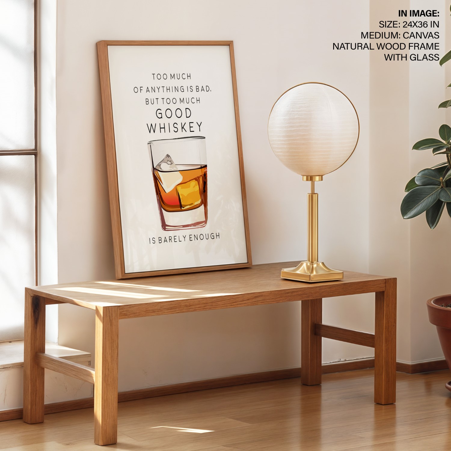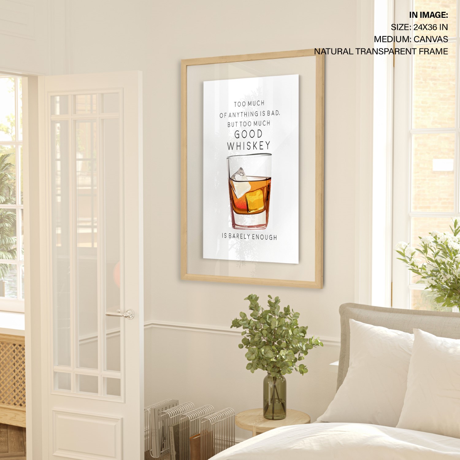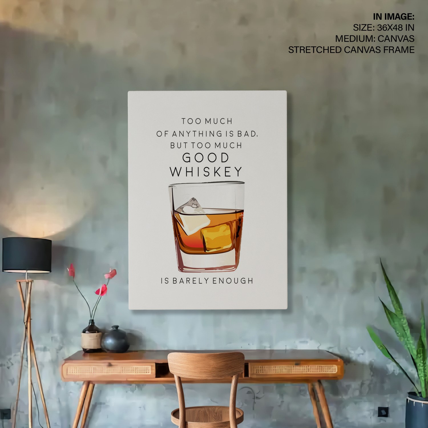 Too Much of Whiskey – Bar Poster, Cocktails, Framed Wall Art – Choose Size & Frame Color