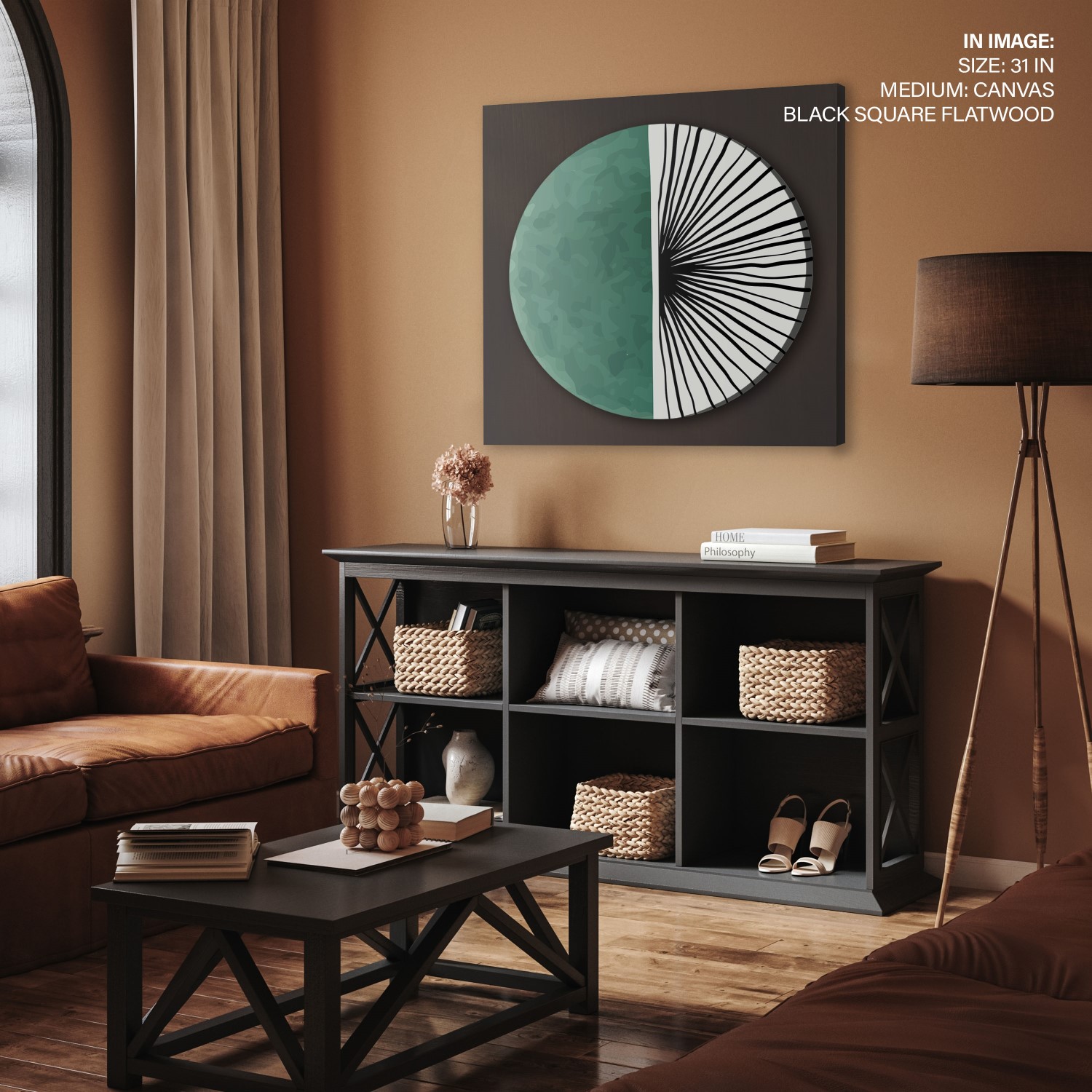 Trendy terracotta grunge abstract #514 – Circular Wooden Frame