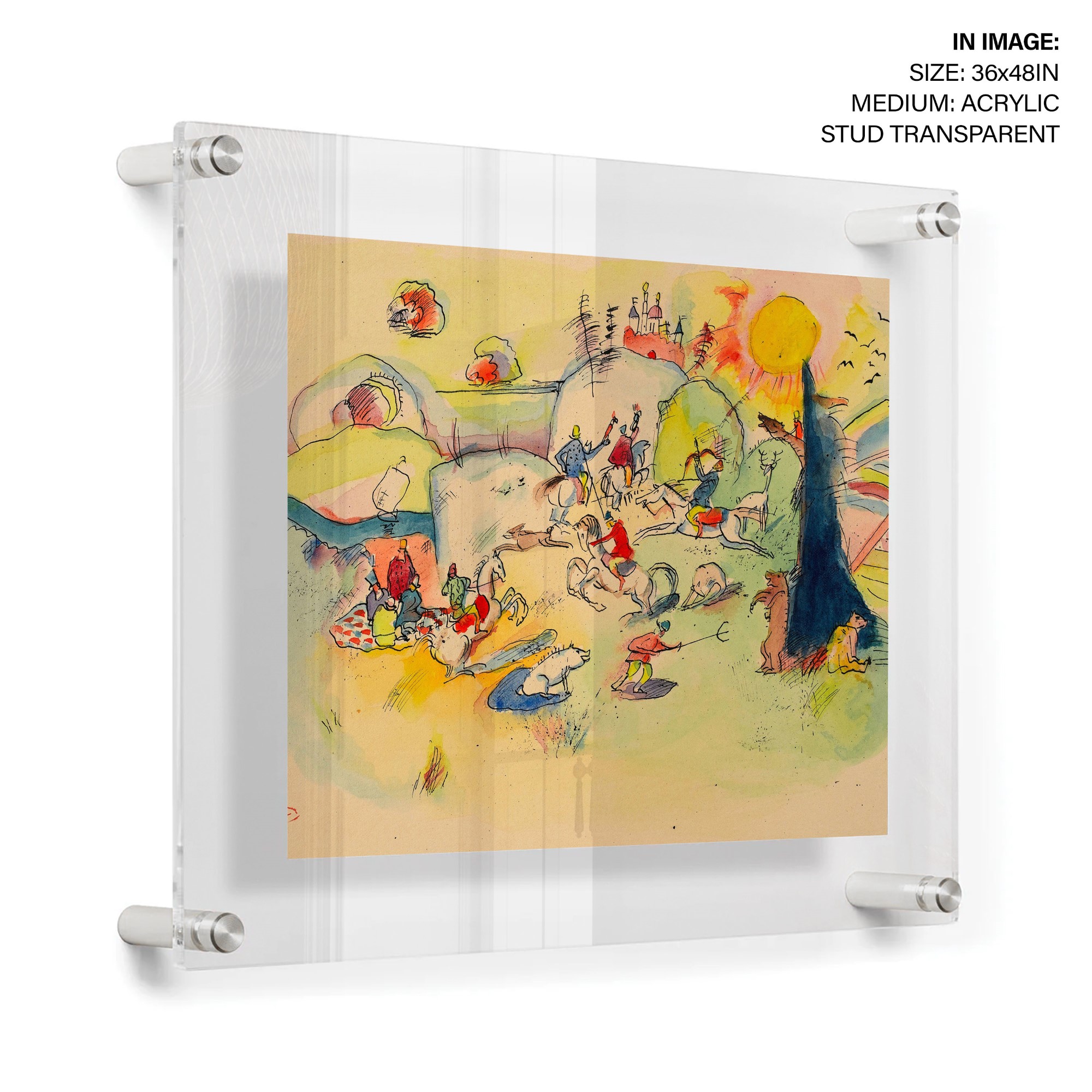 Untitled is a watercolor and ink on paper artwork created by Vassily Kandinsky around 1916. The artwork measures 15.7 x 23.7 cm and features hunting as its subject. The provenance of the artwork is Legs de Nina Kandinsky, 1981. The artwork is currently held by Centre Pompidou, MNAM-CCI/Georges Meguerditchian/Dist. RMN-GP.