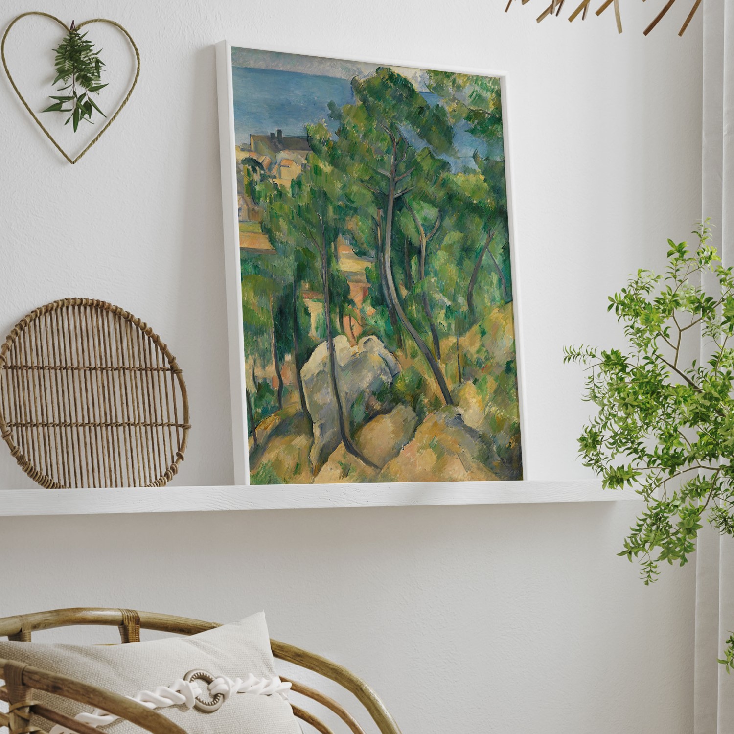 The painting View of the Sea near L’Estaque showcases all the achievements that earned Cézanne the accolade ‘Father of Modernism’. Geometric forms, isolated brushmarks and short, hatched brushstrokes converge to form a landscape whose elements are differentiated primarily by colour rather than material characterisation. Cézanne