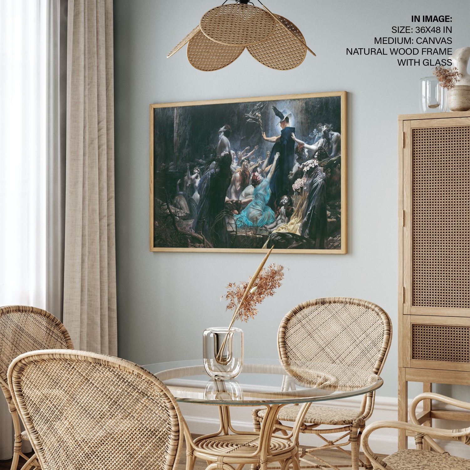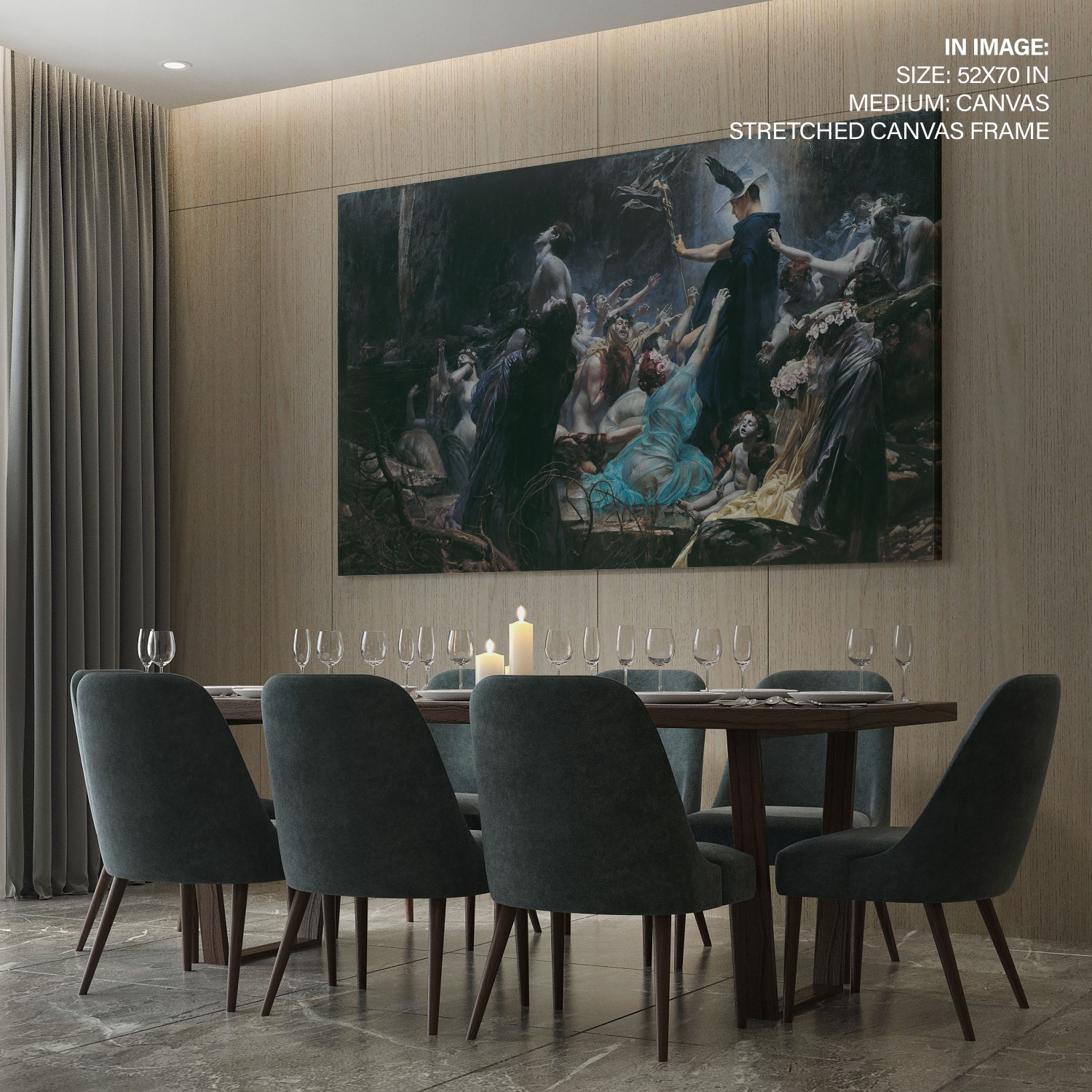 We recommend using Canvas for prominent living spaces (living room, dining hall, bedrooms), Metal/Glass for modern aesthetics, and Art Paper for galleries, bathrooms, kitchens, and other less formal areas.