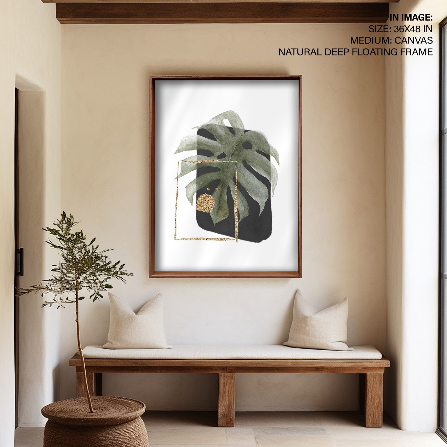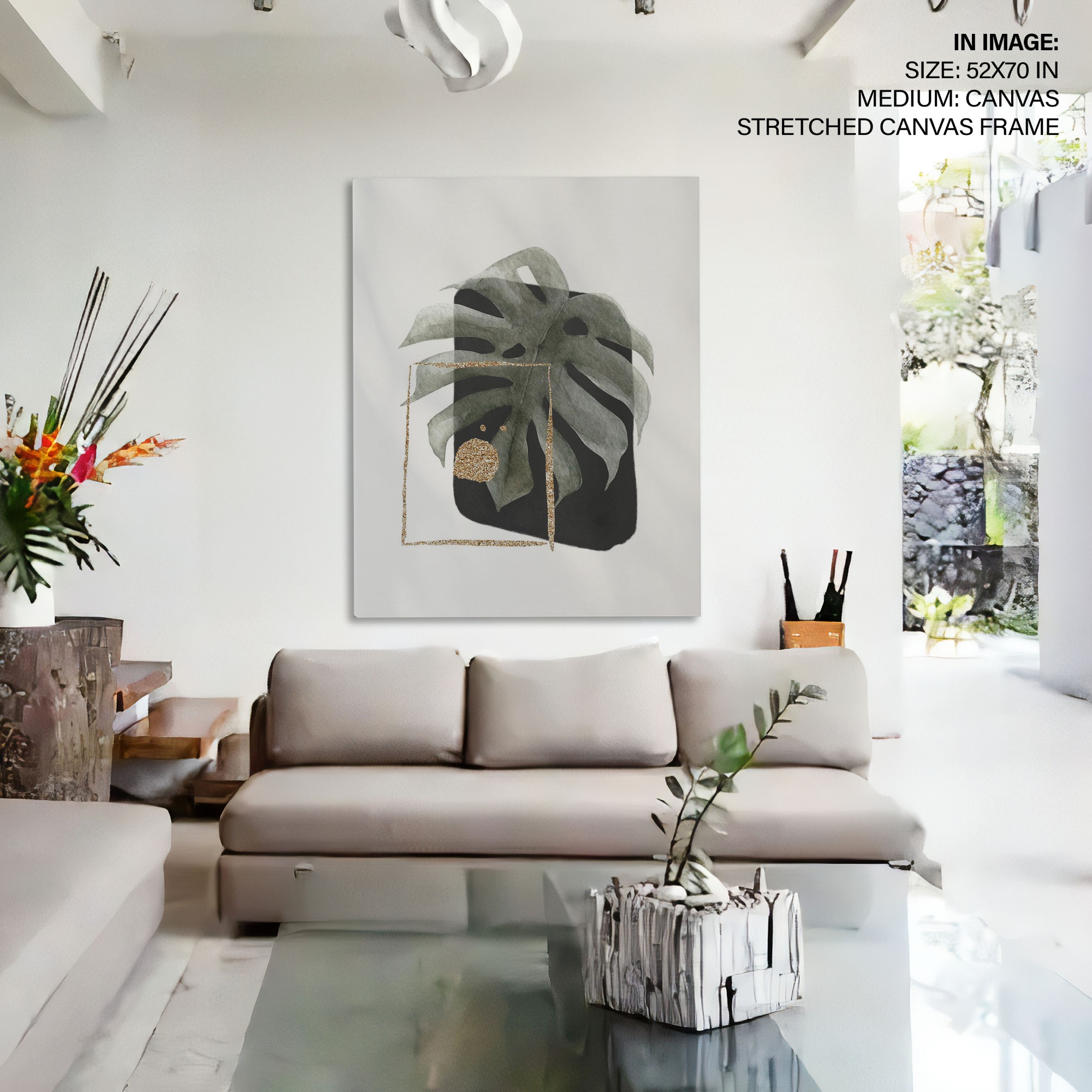 Watercolor gold monstera frond #541