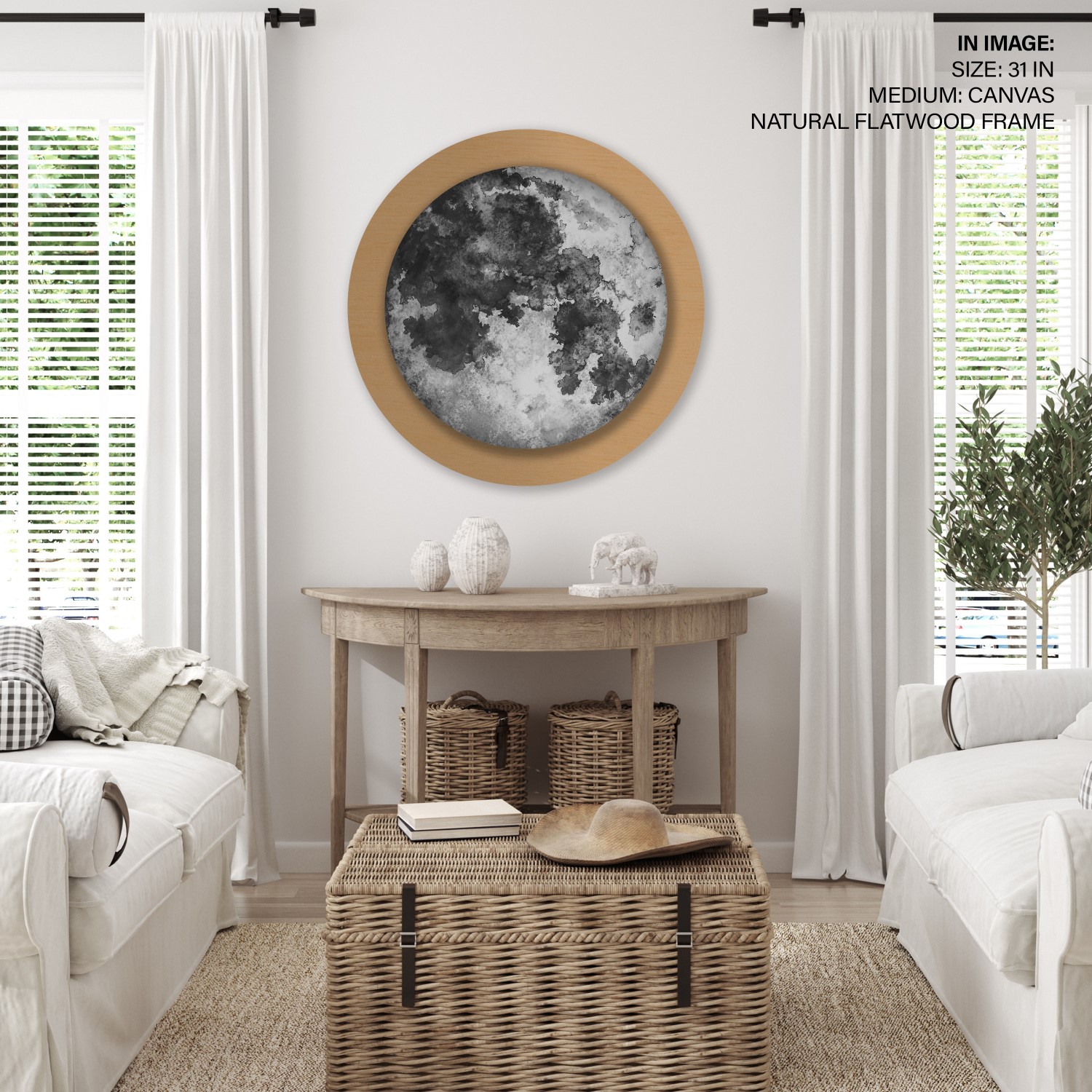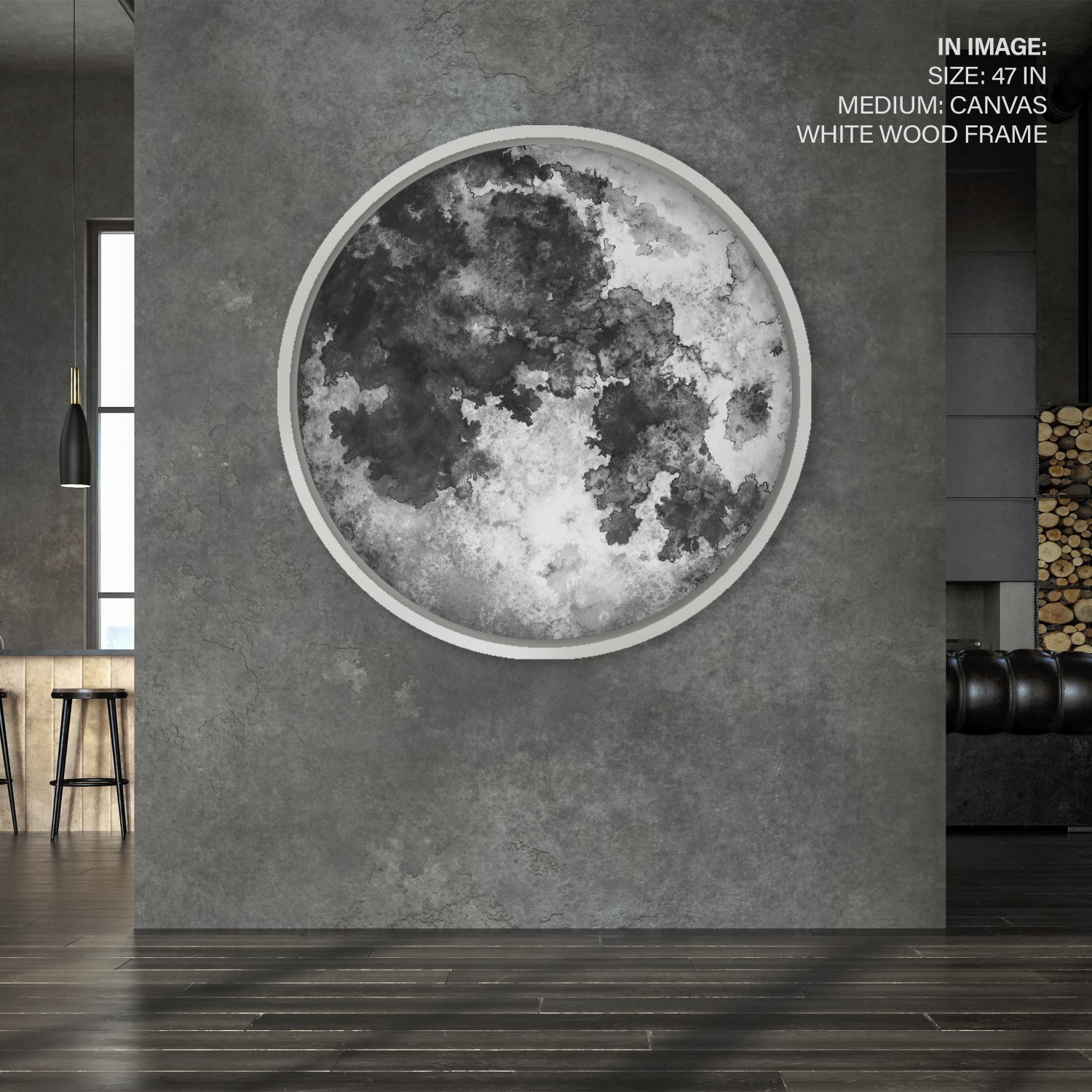 Watercolor moon – Circular Wooden Frame