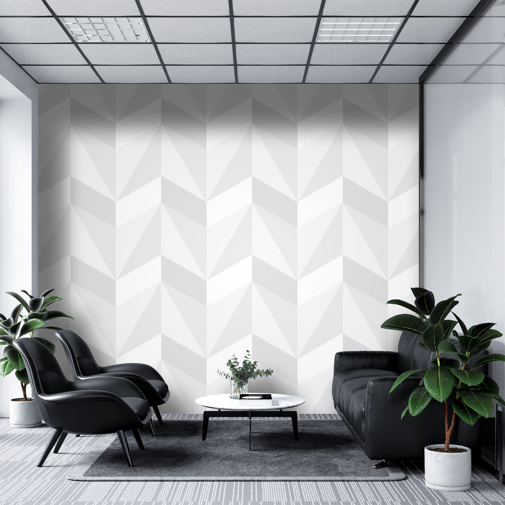 White and Gray geometric – Mural Wallpaper, PVC Free, Non-Toxic