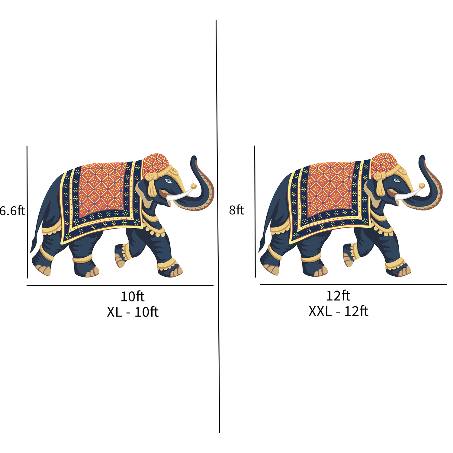 XS – 2ft, S – 4ft, M – 6ft, L – 8ft, XL – 10ft, XXL – 12ft