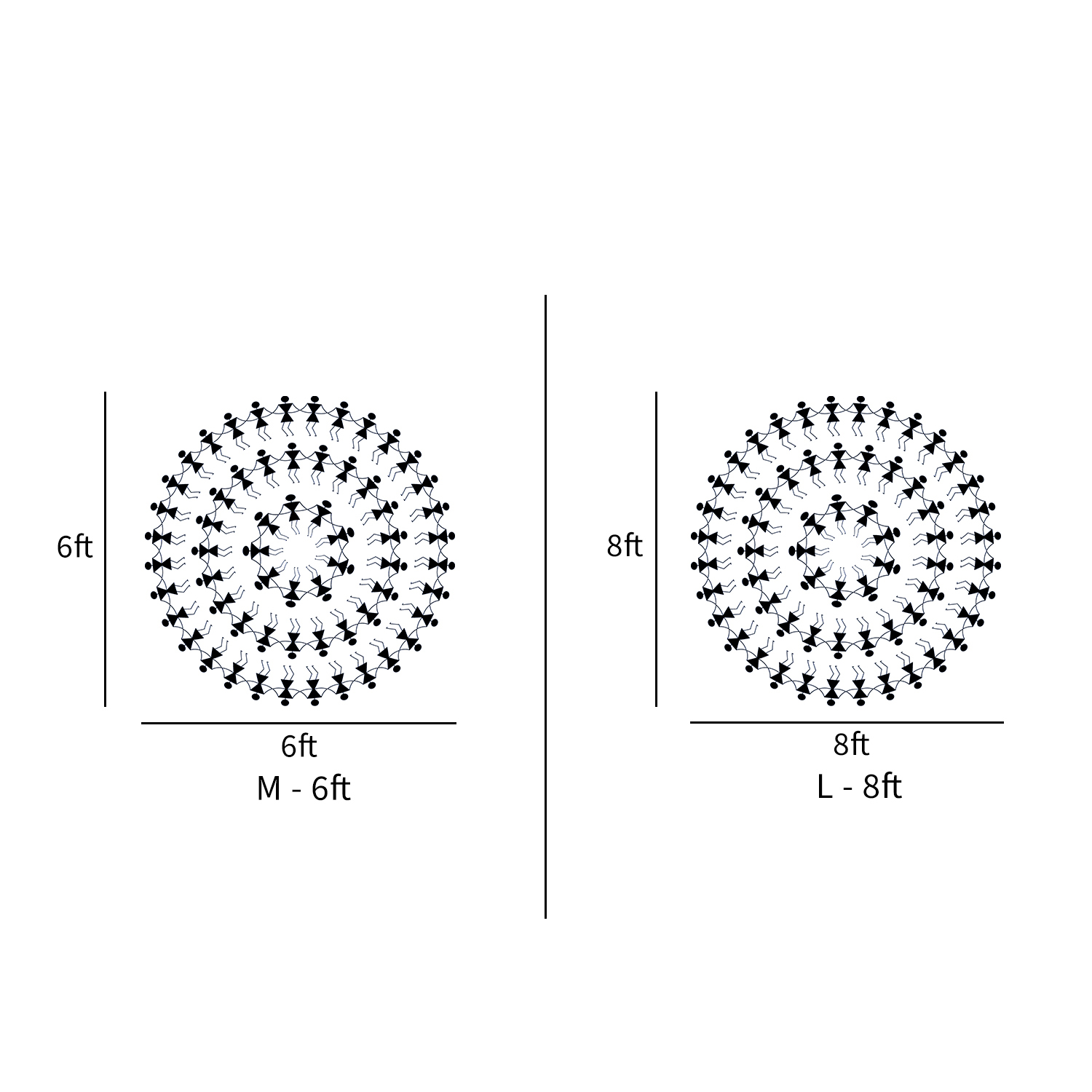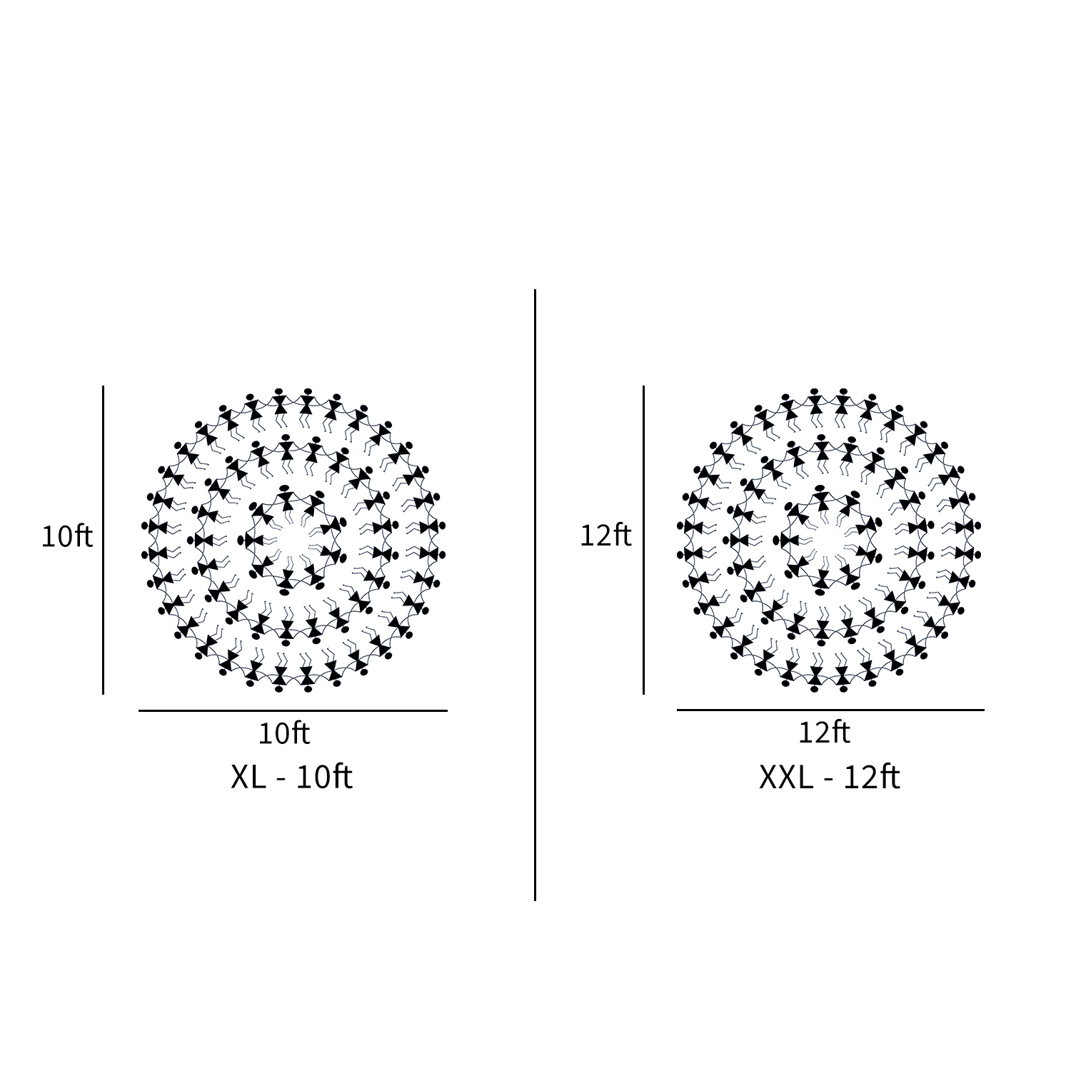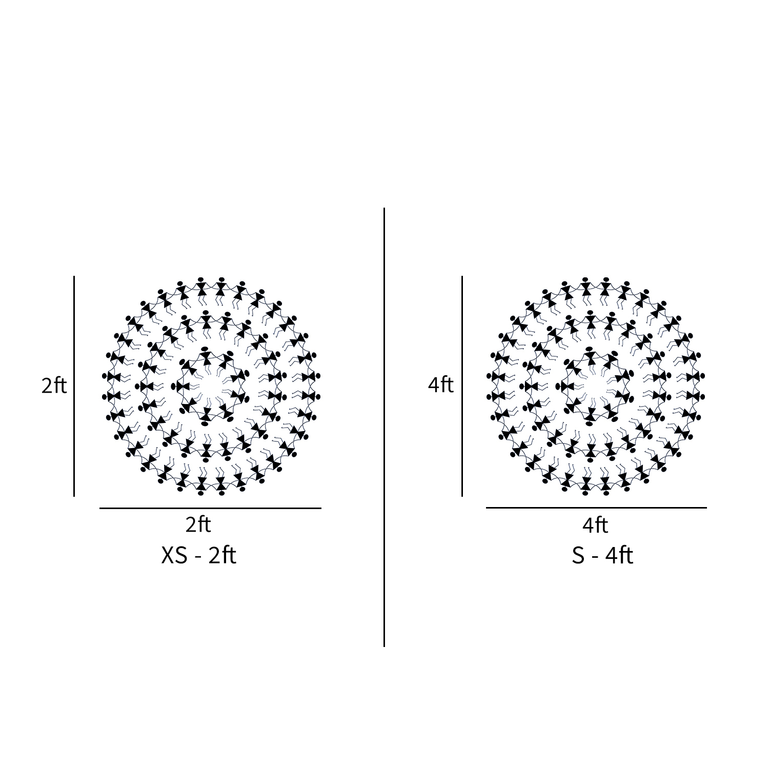 XS – 2ft, S – 4ft, M – 6ft, L – 8ft, XL – 10ft, XXL – 12ft