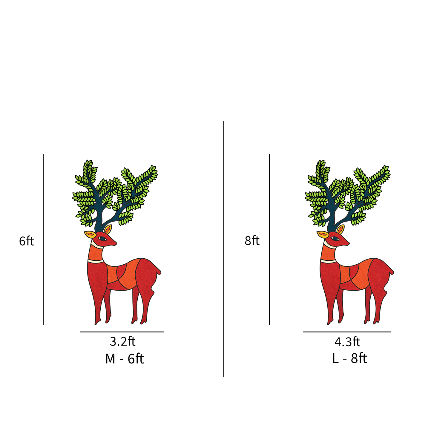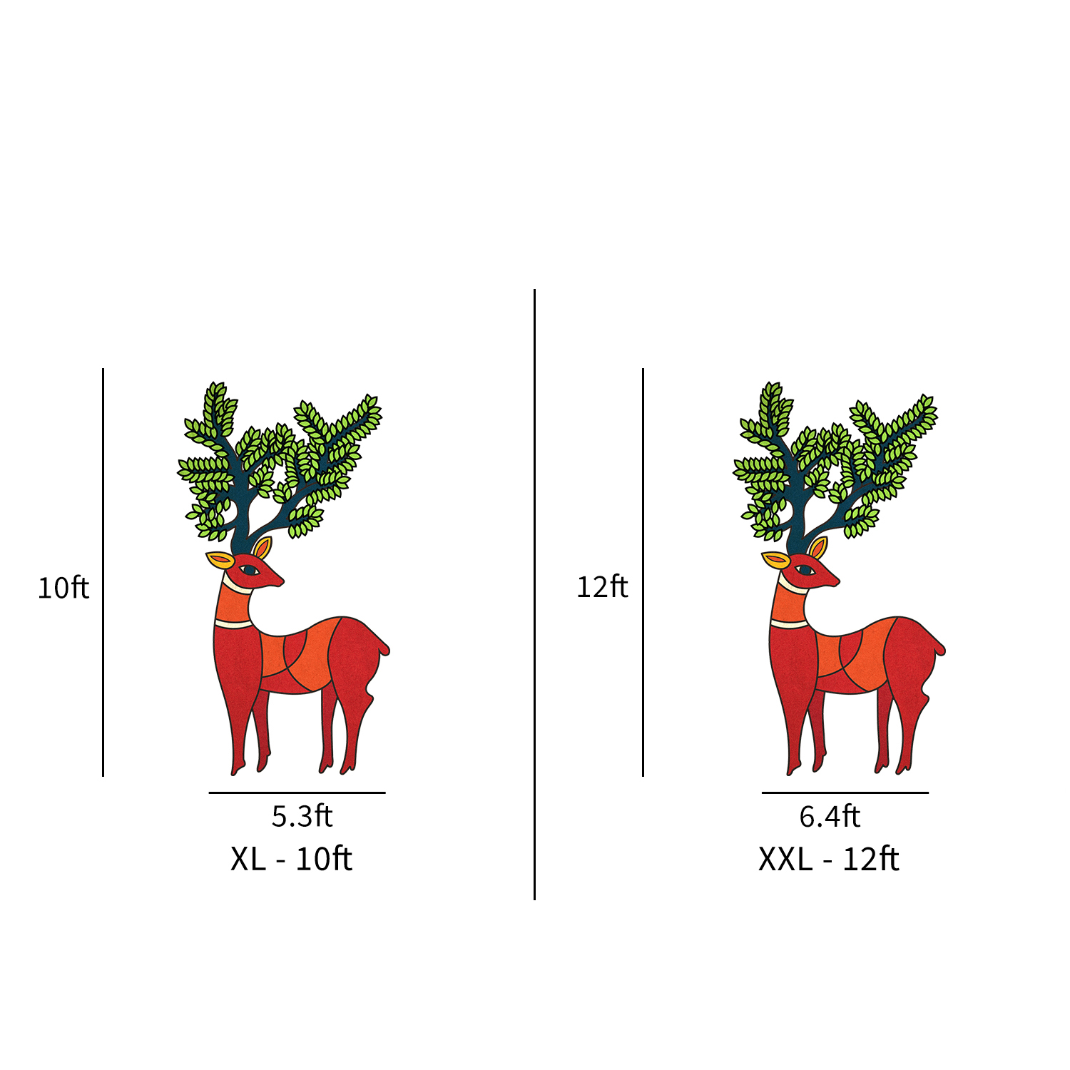 XS – 2ft, S – 4ft, M – 6ft, L – 8ft, XL – 10ft, XXL – 12ft