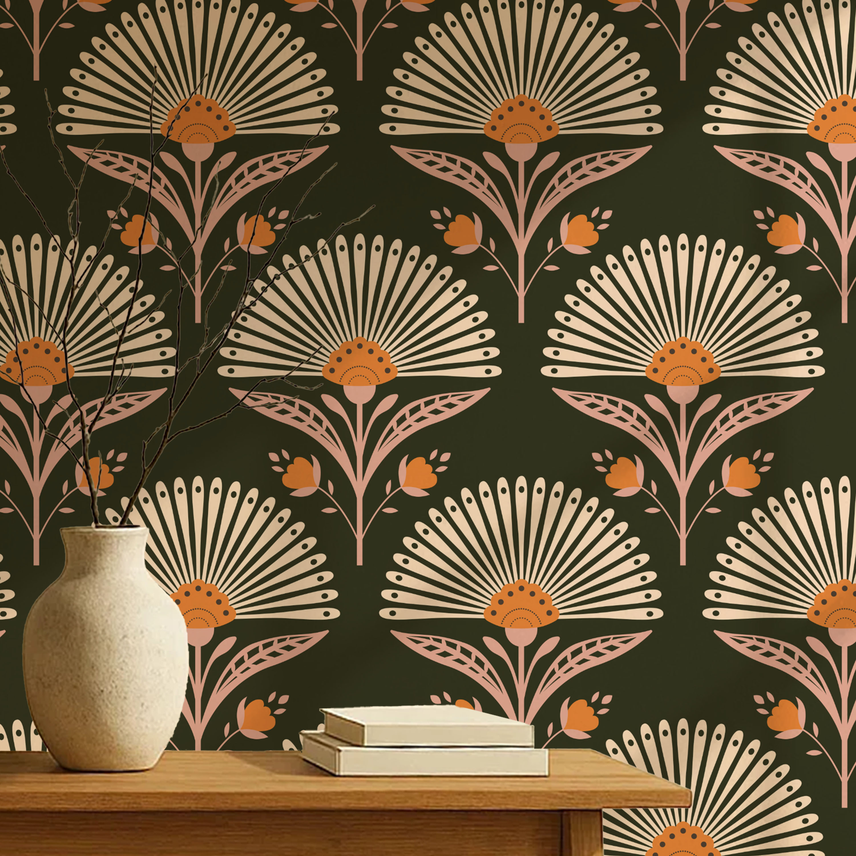 Symphony of Beiges: Art Deco Blooms